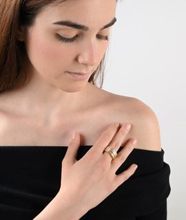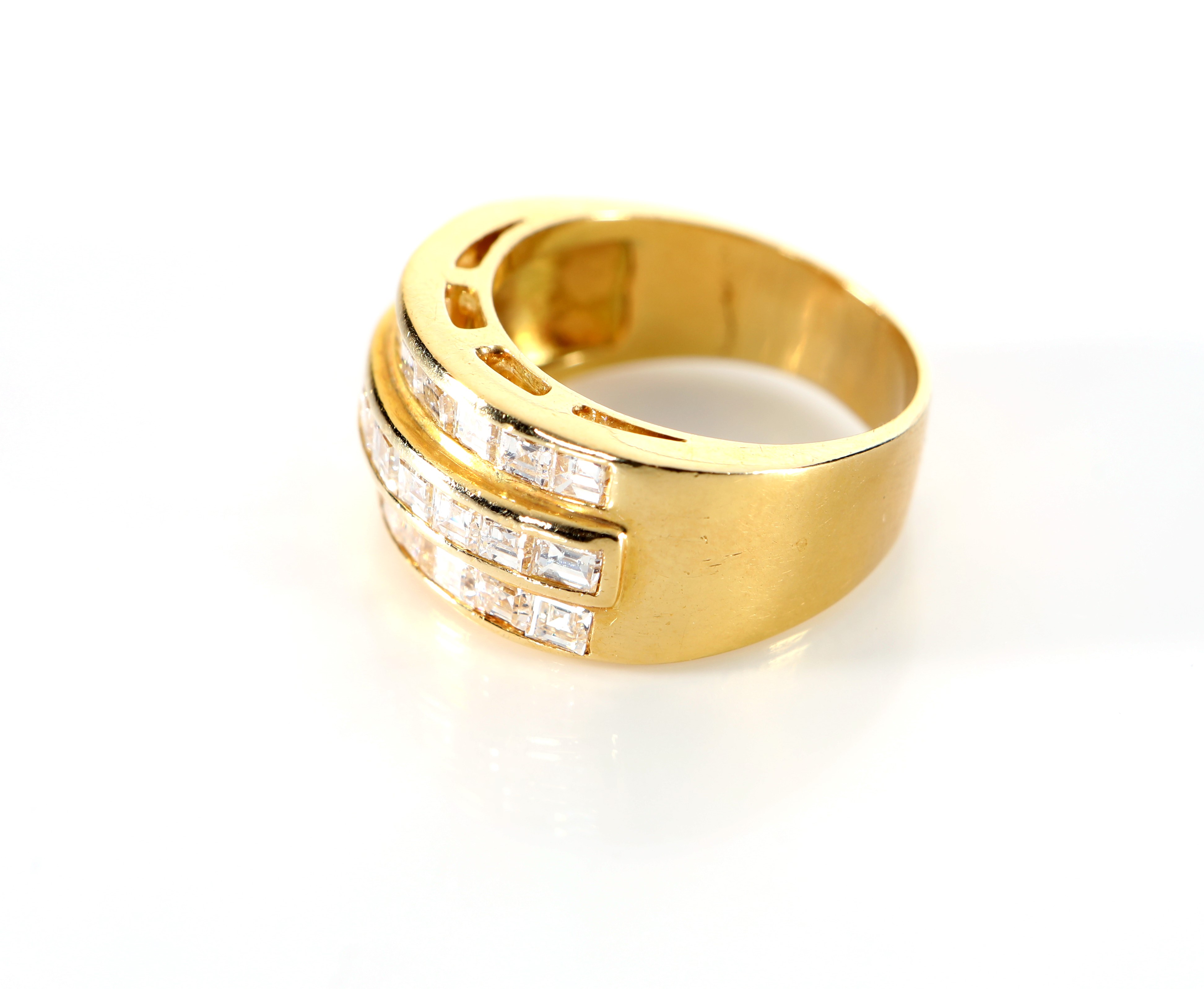 Anello a fascia in oro e diamanti in taglio carrè
