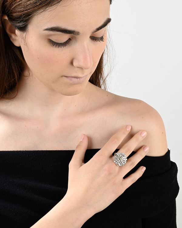 Anello a fiore in oro e diamanti