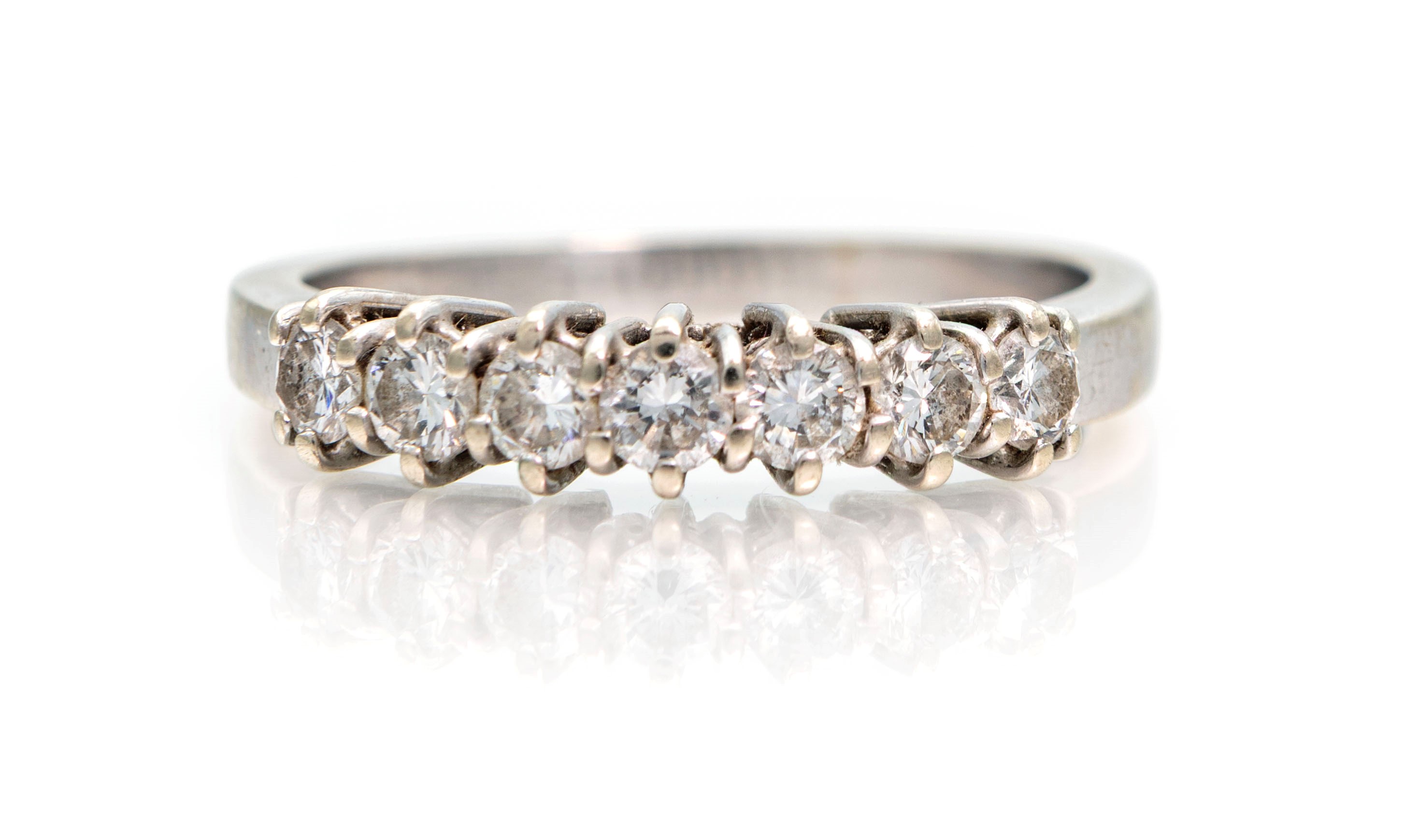 Oro bianco 750/1000. Diamanti in taglio rotondo ct. 0,50 ca. Peso complessivo gr. 4,50