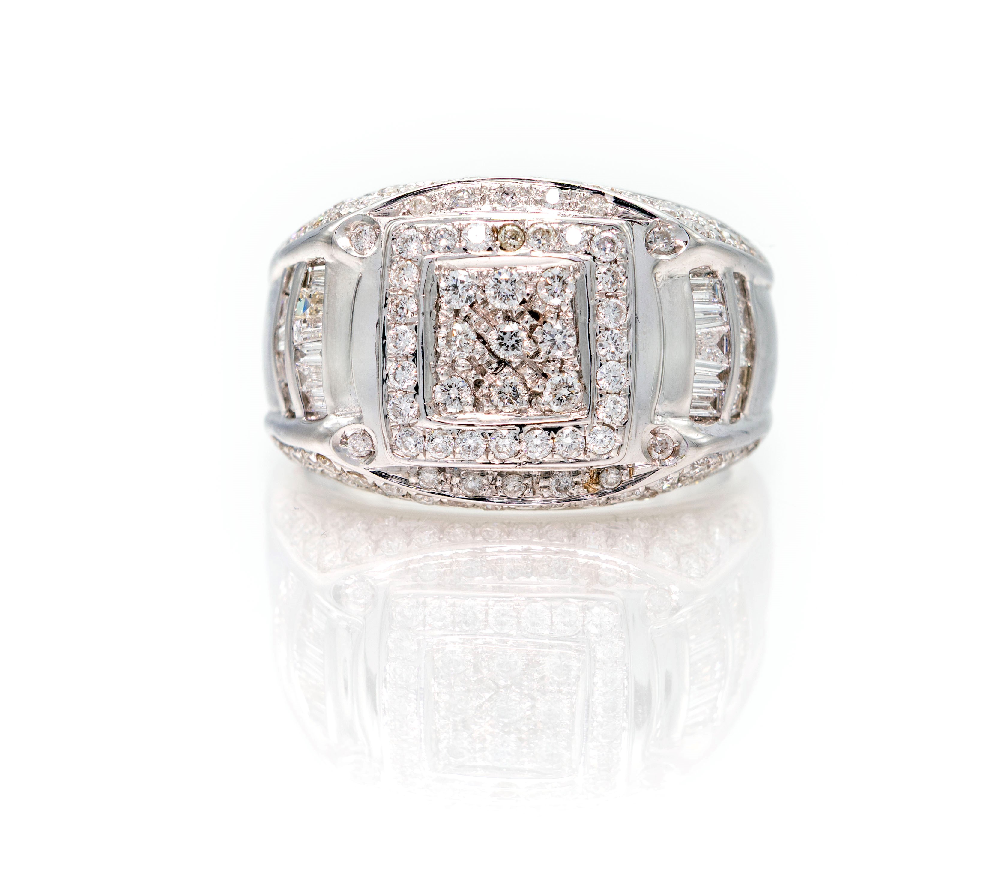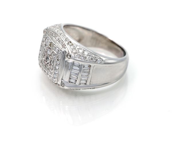 Oro bianco 750/000. Diamanti in taglio rotondo brillante ct. 1,50 ca. Peso complessivo gr. 14.