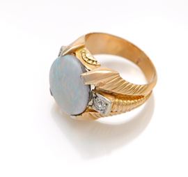 Anello da uomo in oro, opale e brillanti