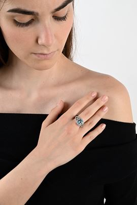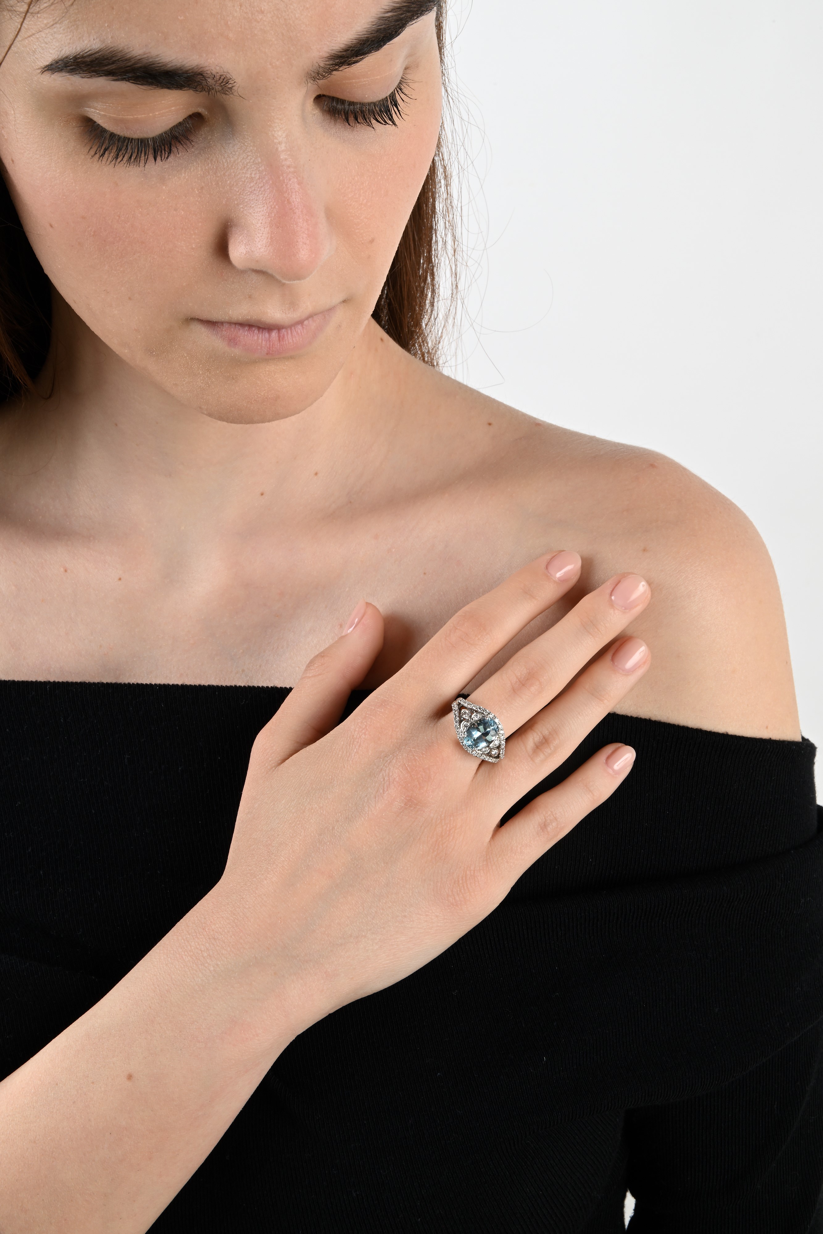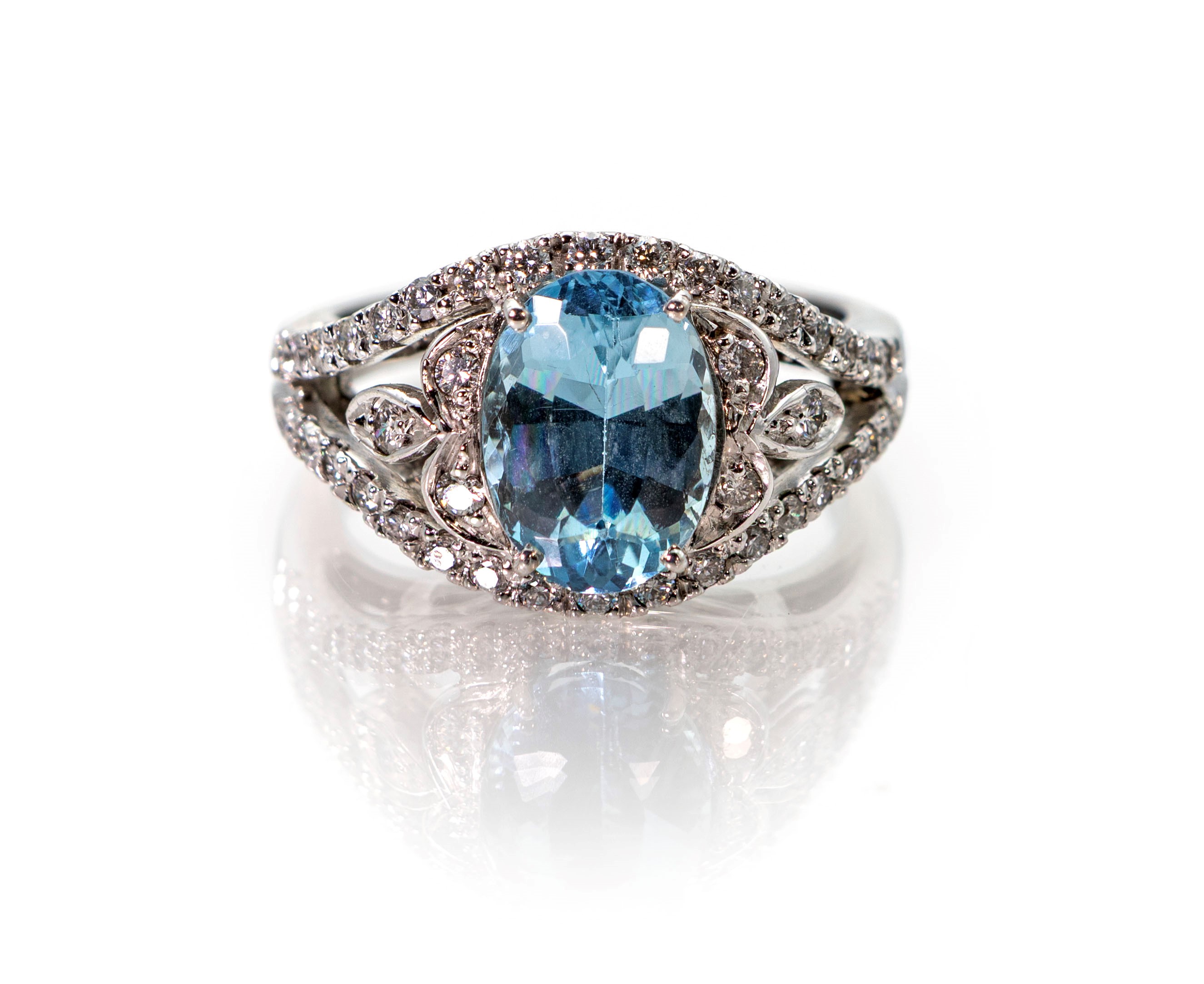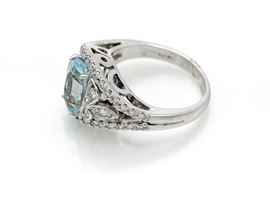 Oro bianco 750/000. Diamanti in taglio rotondo brillante, acquamarina in taglio ovale ct. 6 ca. Peso complessivo gr. 7,90