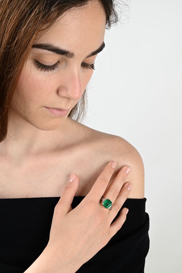 Anello in oro, smeraldo e diamanti in taglio triangolo