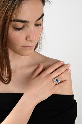 Anello in oro, zaffiro e diamanti in taglio tepper.