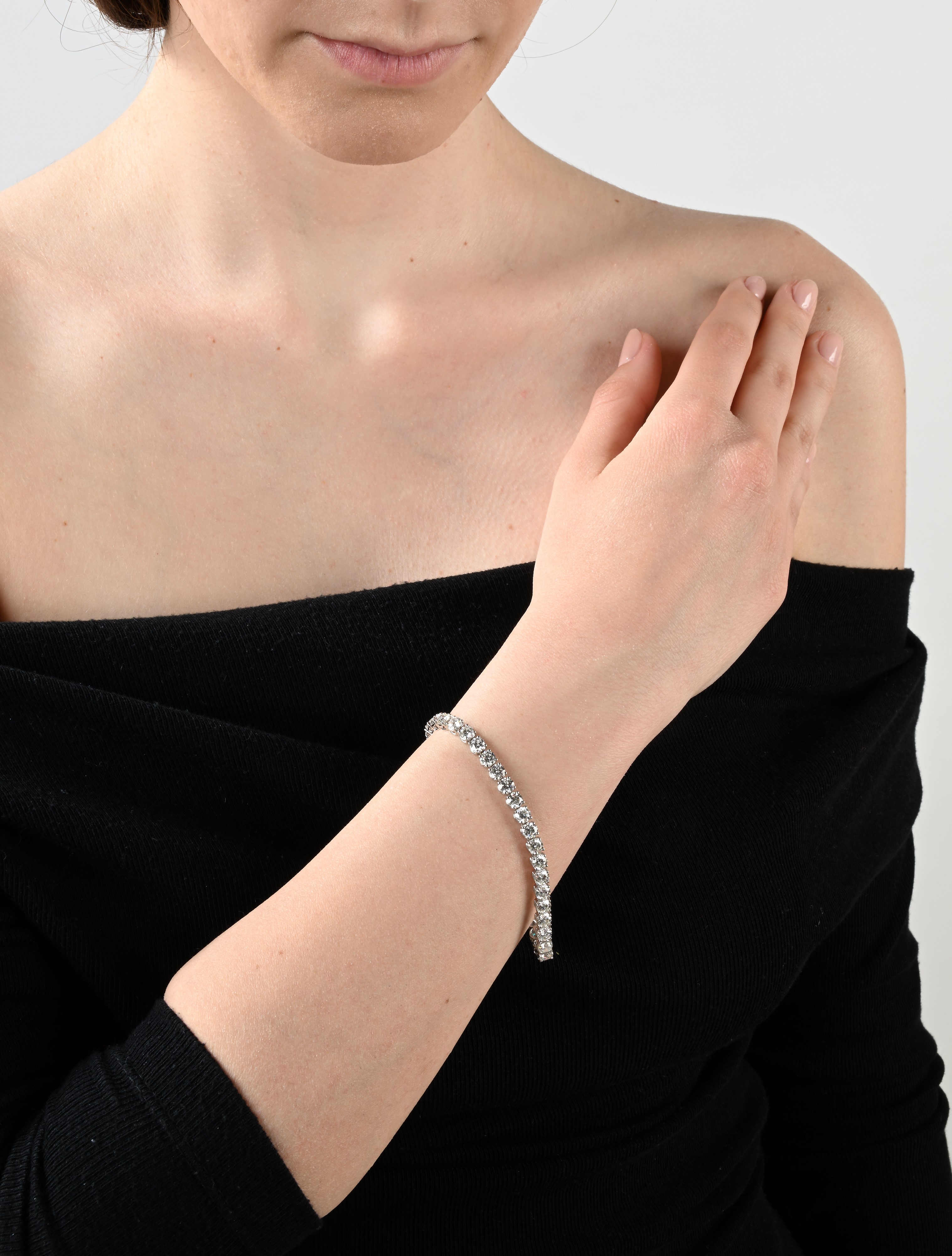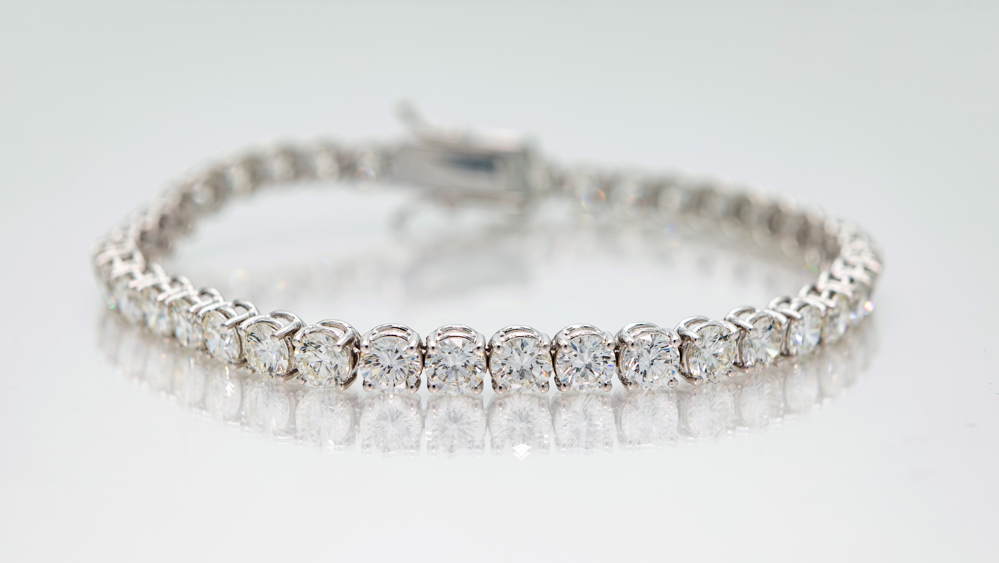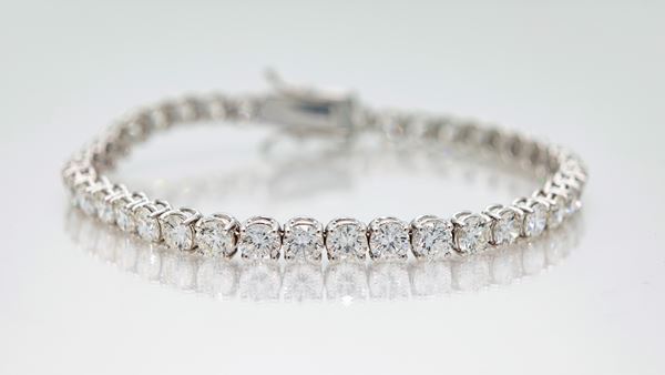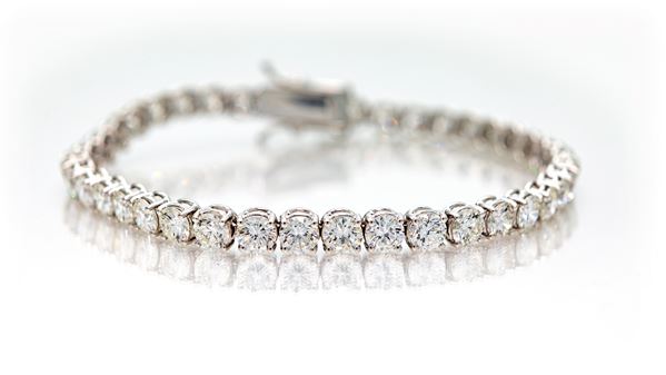 Oro bianco 750/000. Diamanti in taglio rotondo brillante ct. 11,20, G -H, VVS - VS. Peso complessivo gr. 14,10.