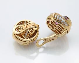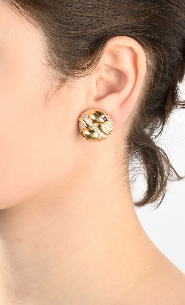 Oro giallo 750/000. Diamanti in taglio rotondo brillante. Punzone del 750/000 e punzone del fabbricante a Roma. Peso complessivo gr. 28,60