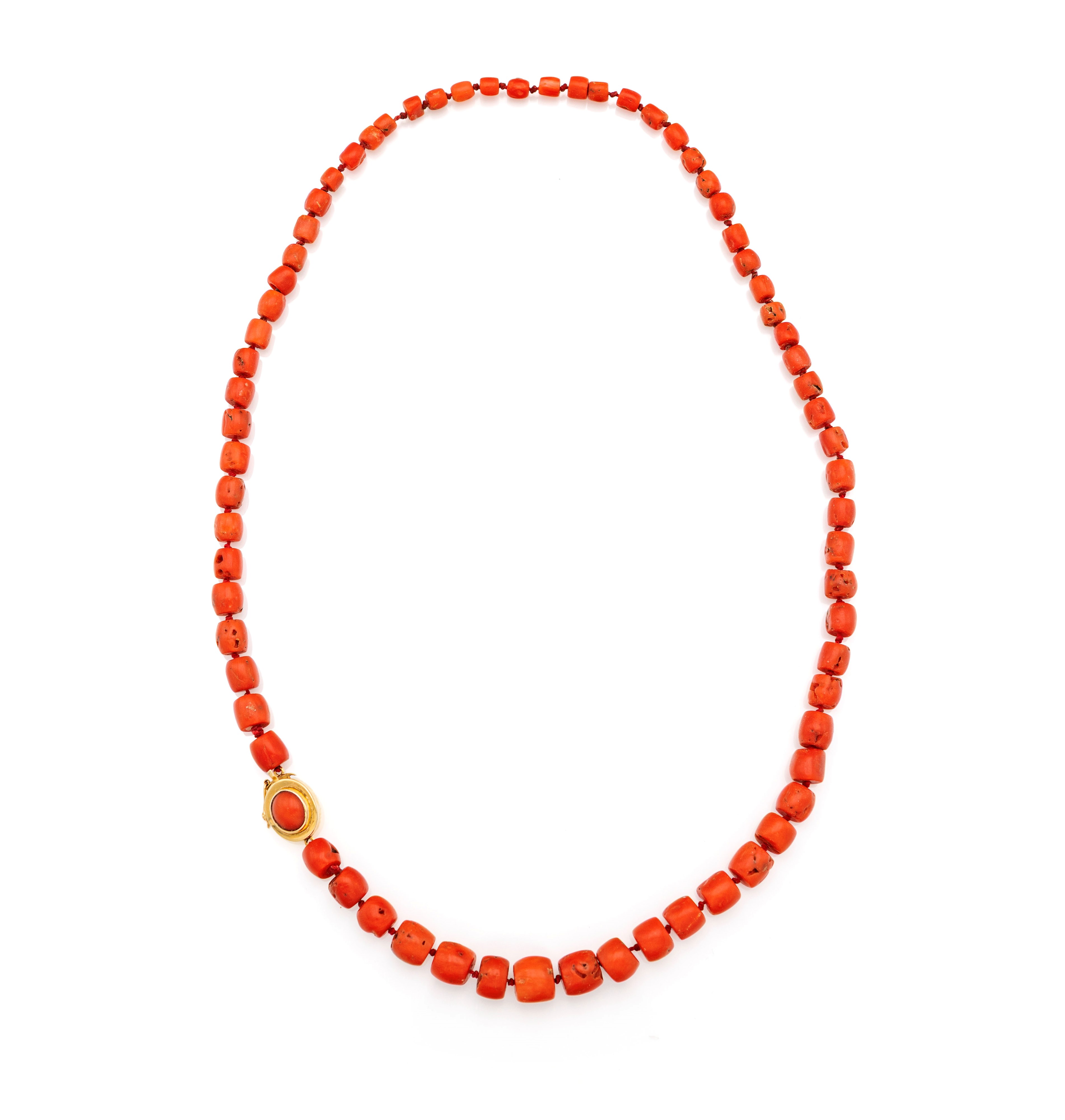 Oro giallo 750/000. Corallo da mm 6 a mm 12. Peso complessivo gr. 58.