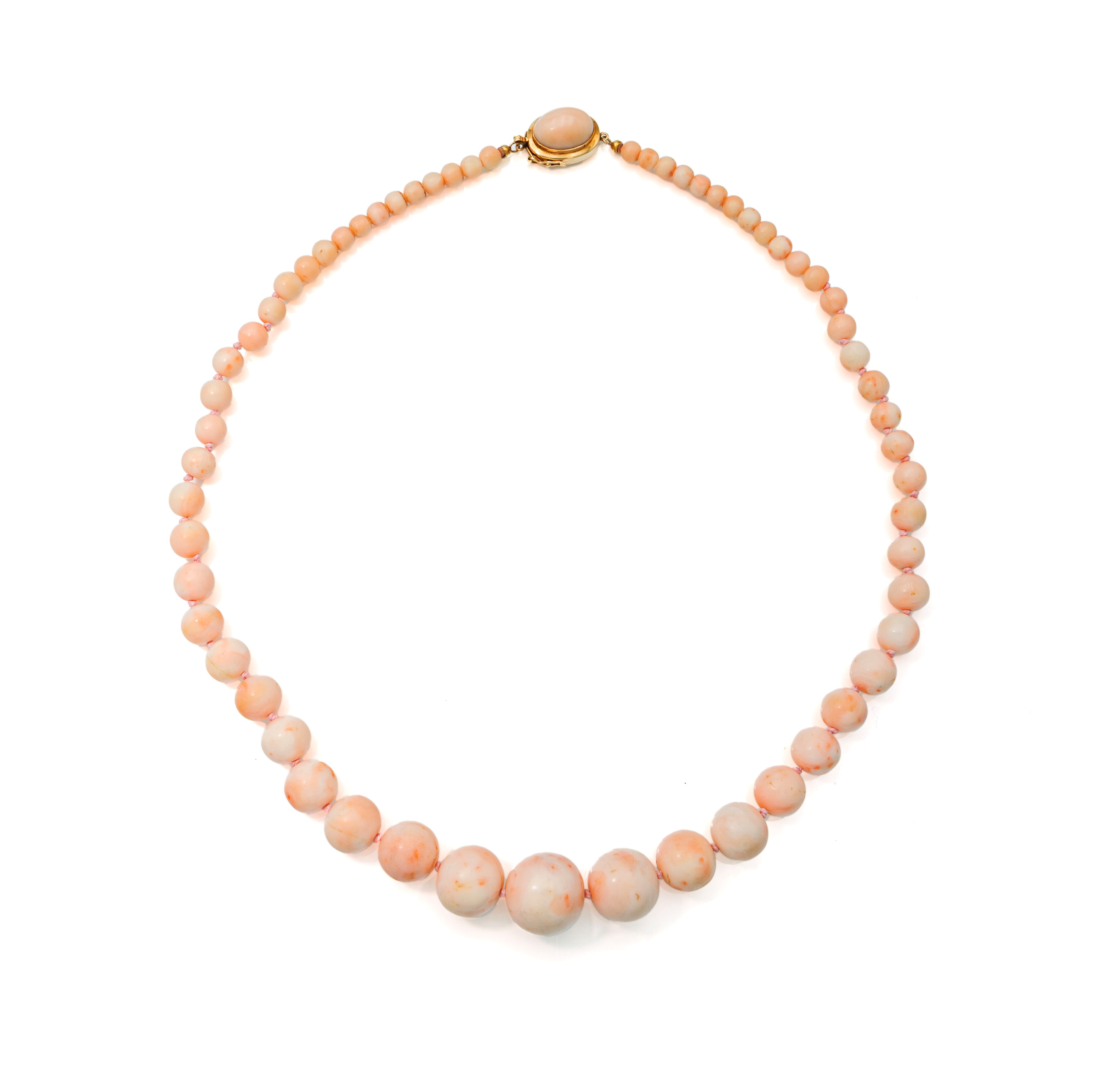 Oro giallo 750/000. Corallo in taglio sferico da mm. 6 a mm. 19. Peso complessivo gr. 90,60.