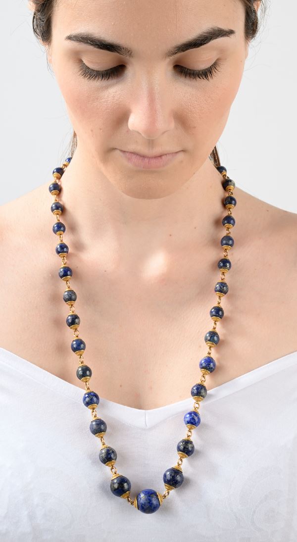 Oro giallo 750/000. Lapislazzuli da mm. 8 a mm. 16