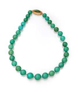 Oro giallo 750/000. Turchese in taglio sferico da mm. 11 a mm. 15