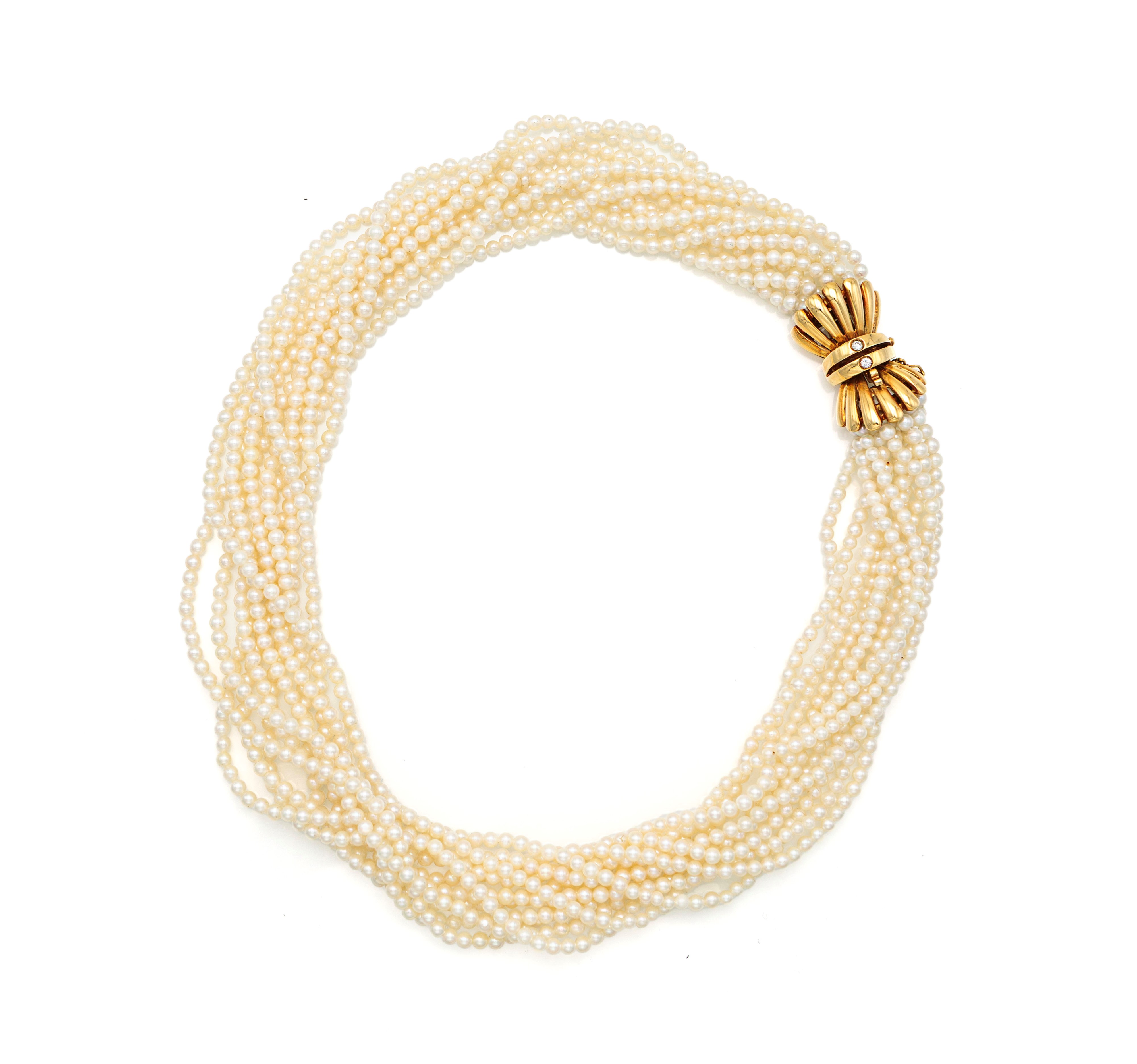 Oro giallo 750/000. Perle da coltivazione mm. 3.