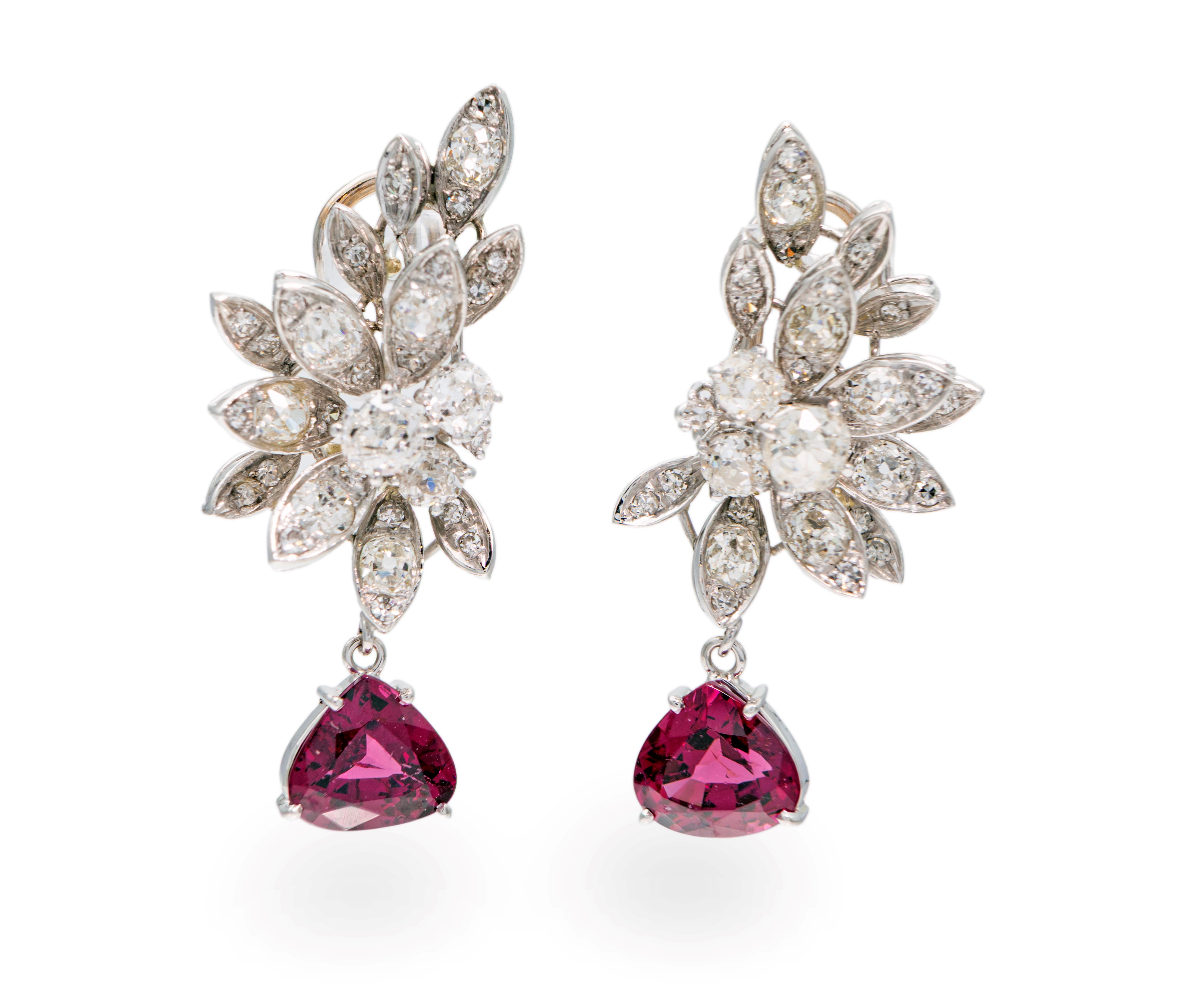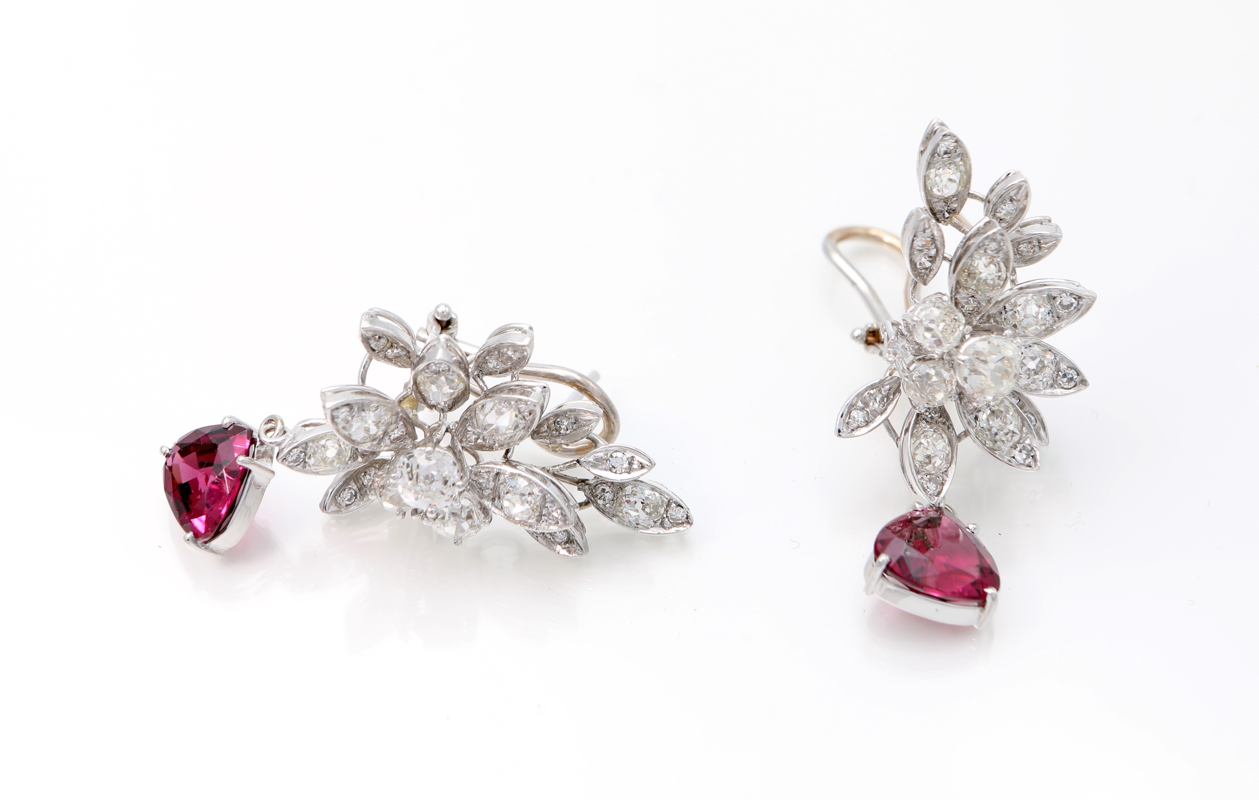 Oro bianco 750/000. diamanti in taglio vecchia Europa ct. 2,30 ca. Rubelliti ct. 4 ca.