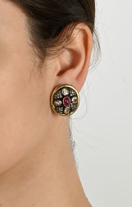 Coppia di orecchini in oro e argento, rubini e diamanti