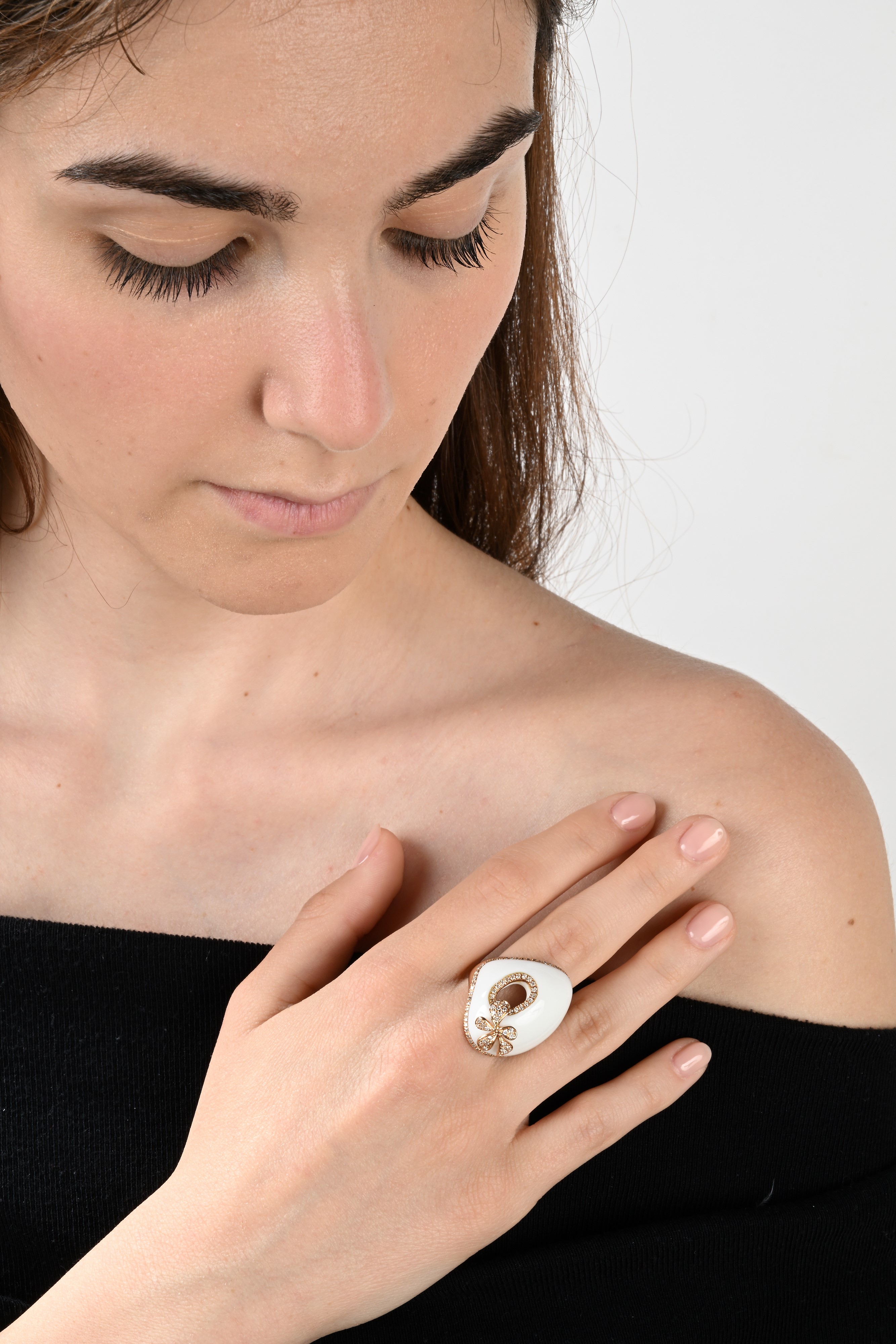 DD gioielli, anello in oro, brillanti e ceramica