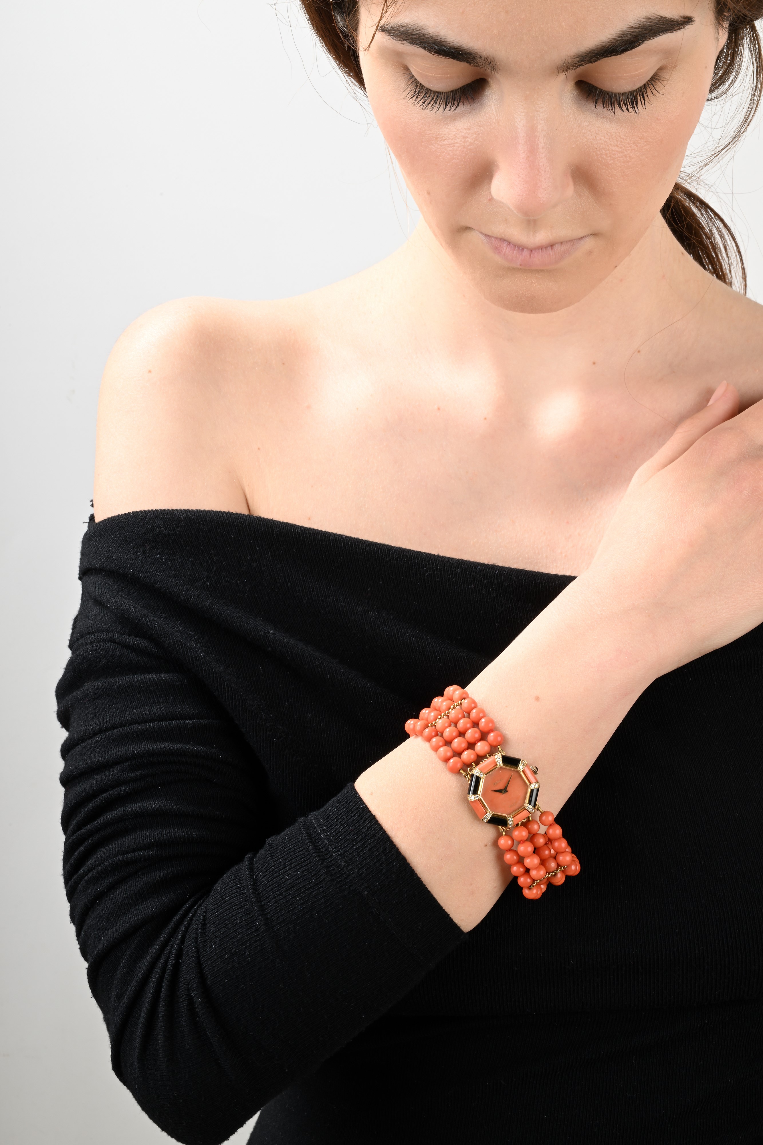Delaneau - Orologio gioiello in oro, corallo, onice e brillanti