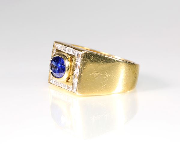 Gianni Carità, anello in oro, zaffiro e brillanti.