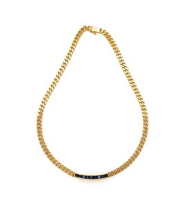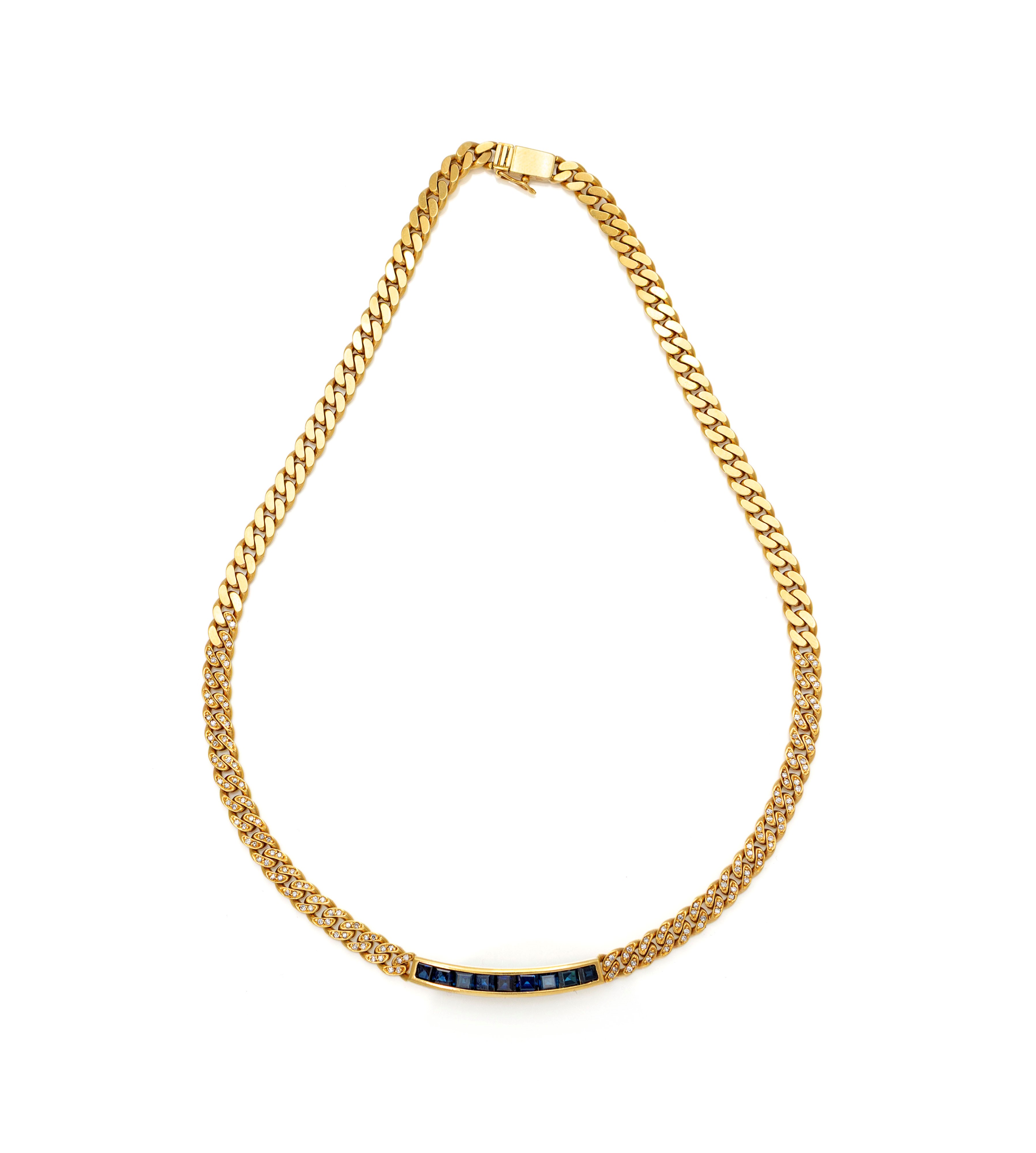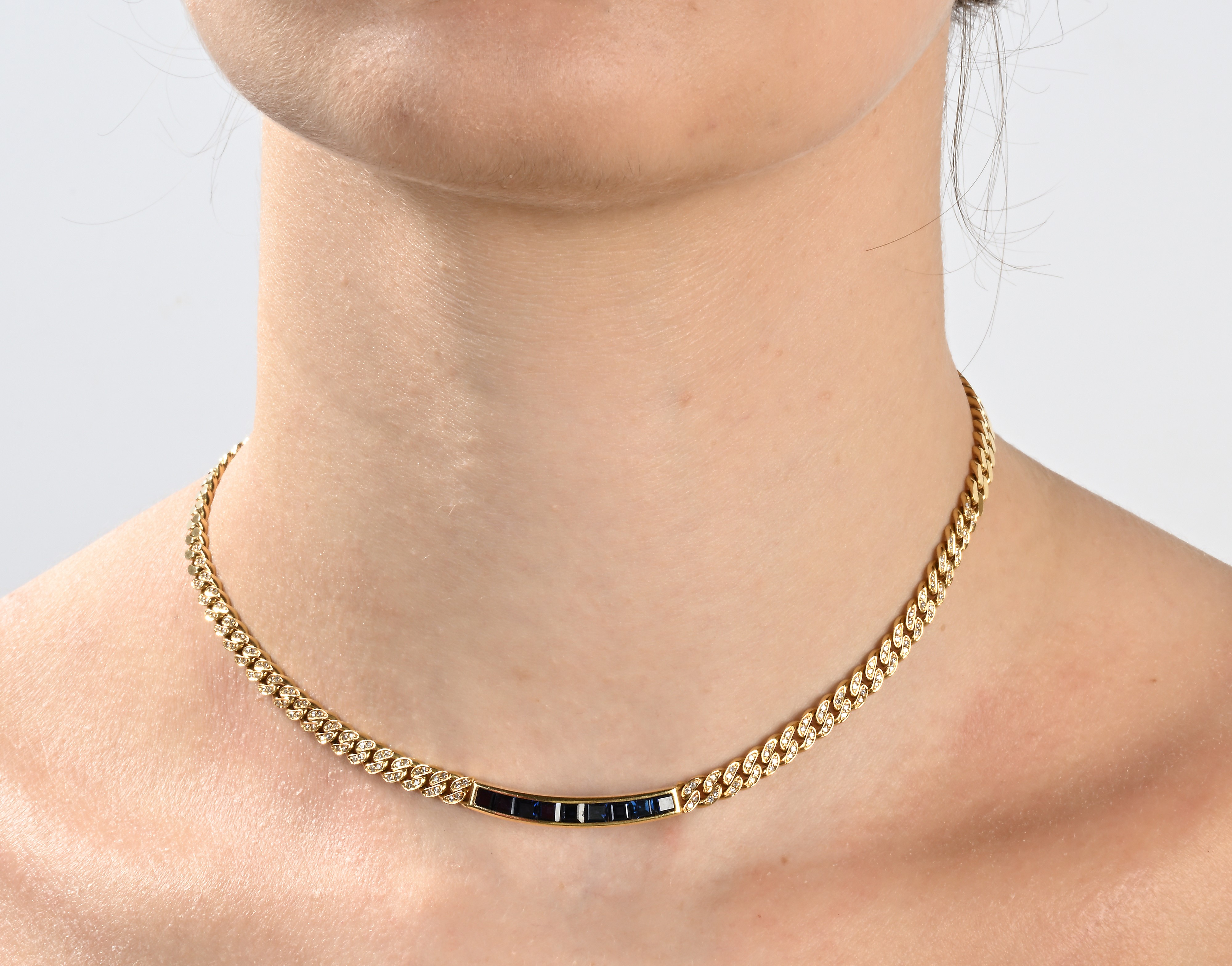 Girocollo a maglia groumette in oro, brillanti e zaffiri