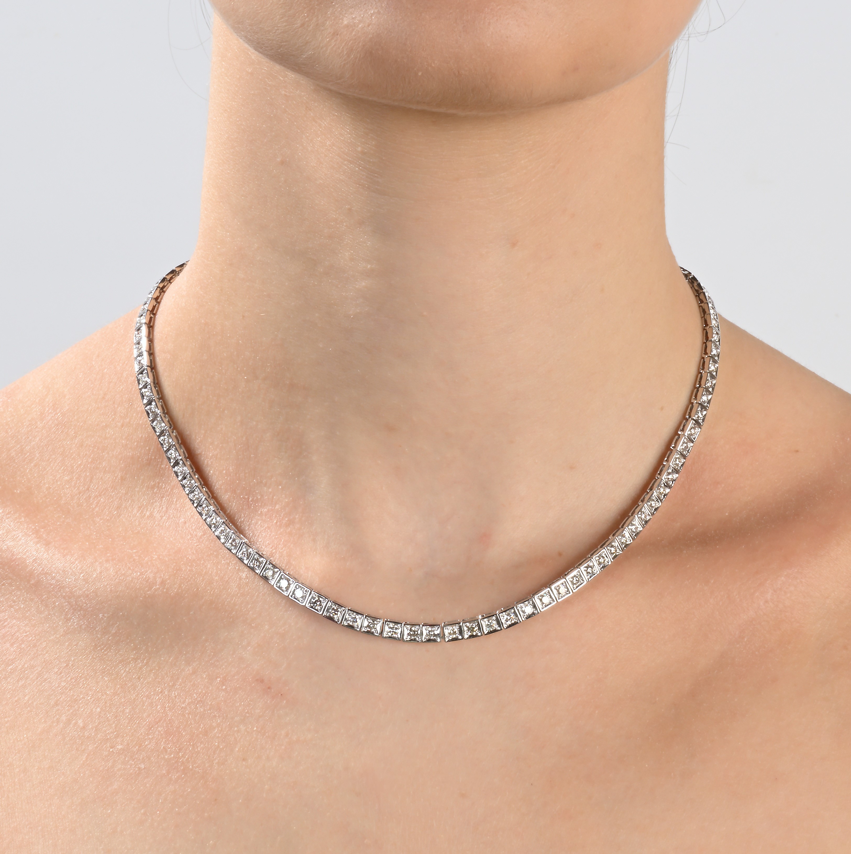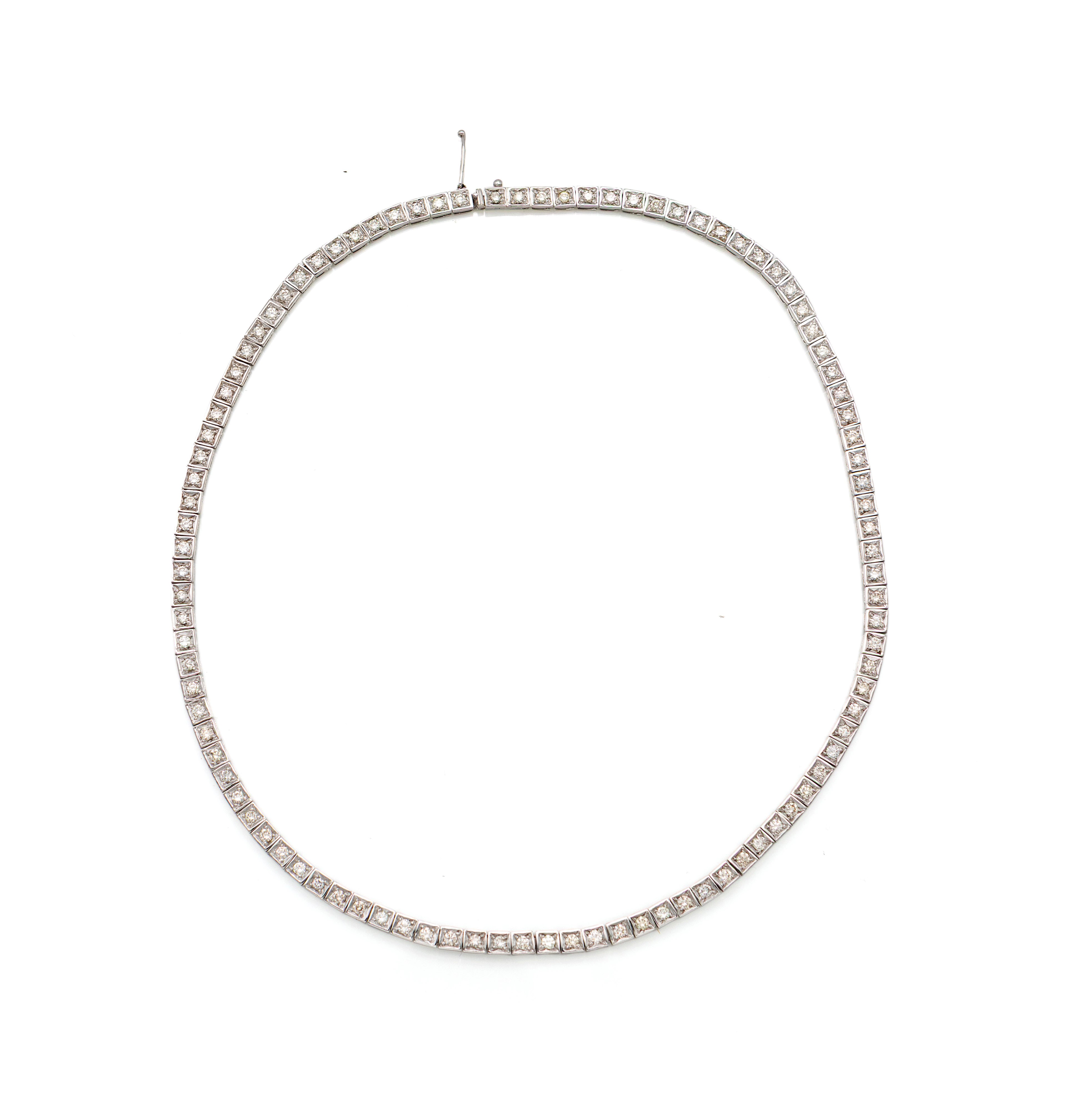 Oro bianco 750/000. Diamanti in taglio rotondo brillante ct. 6,80 ca. Peso complessivo gr. 35,80