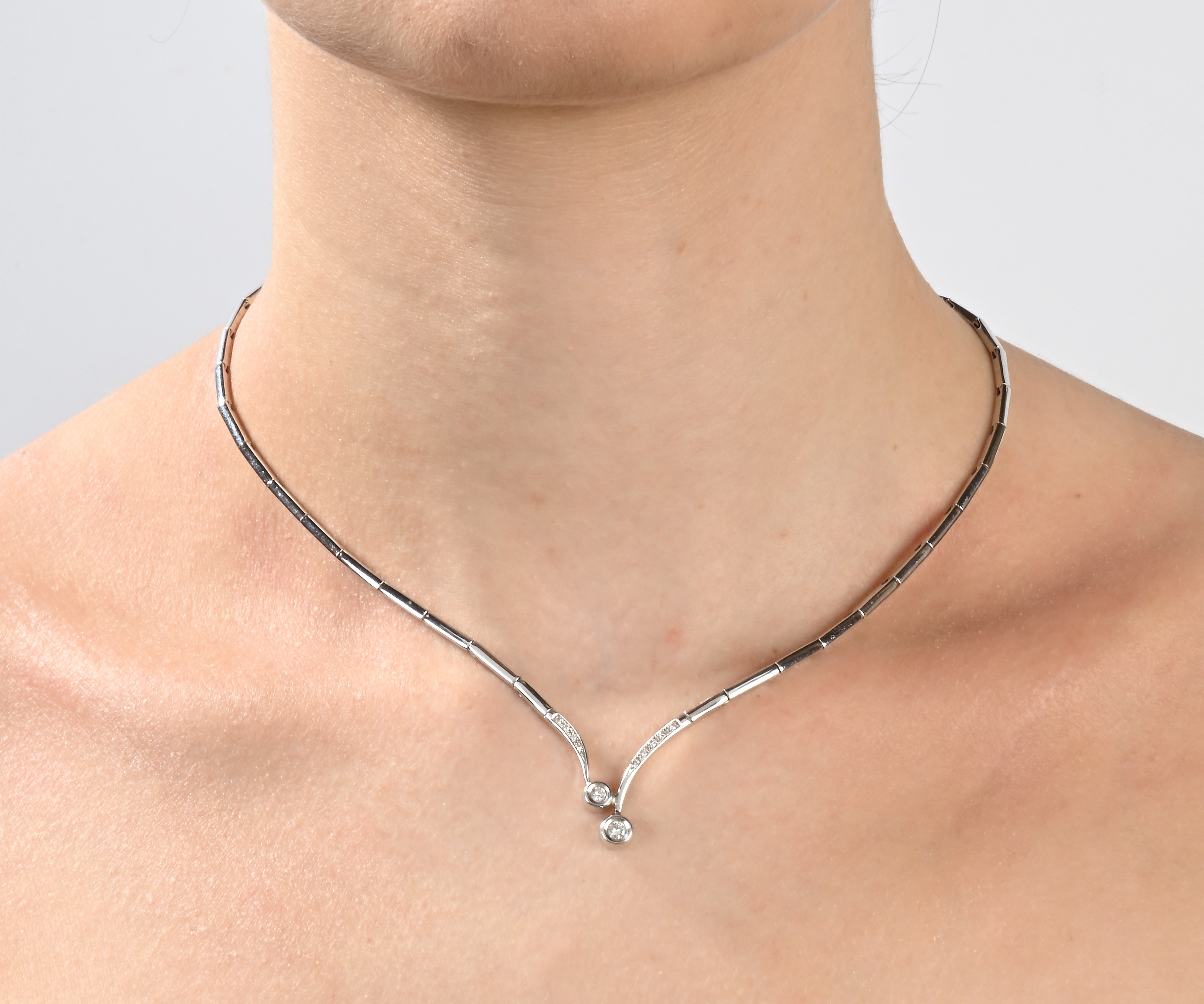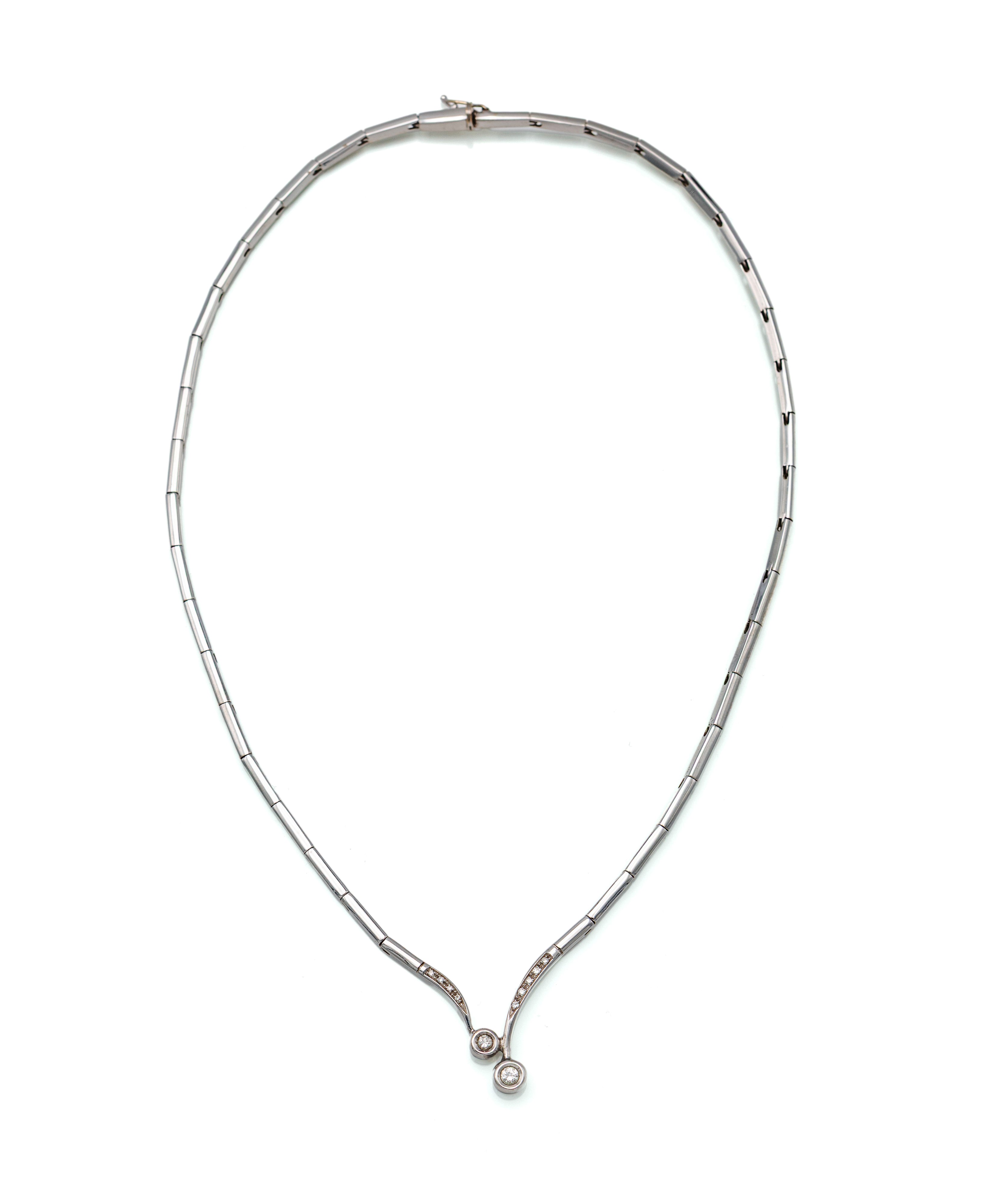 Oro bianco 750/000. Diamanti in taglio rotondo brillante ct. 0,20 ca. Peso complessivo gr. 20,10