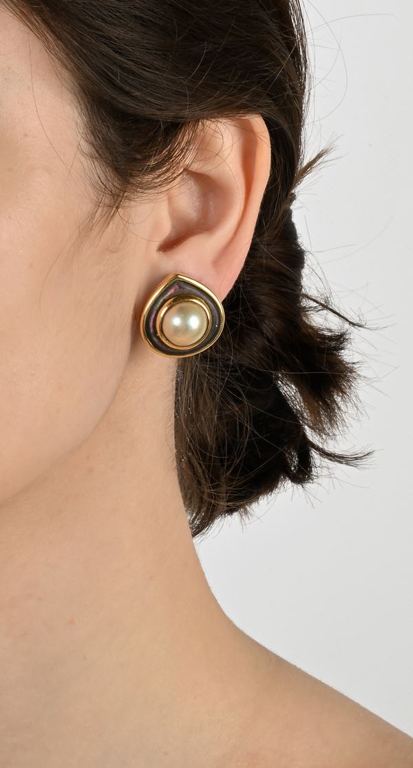 Marina Bulgari, coppia di orecchini in oro e perle mabè