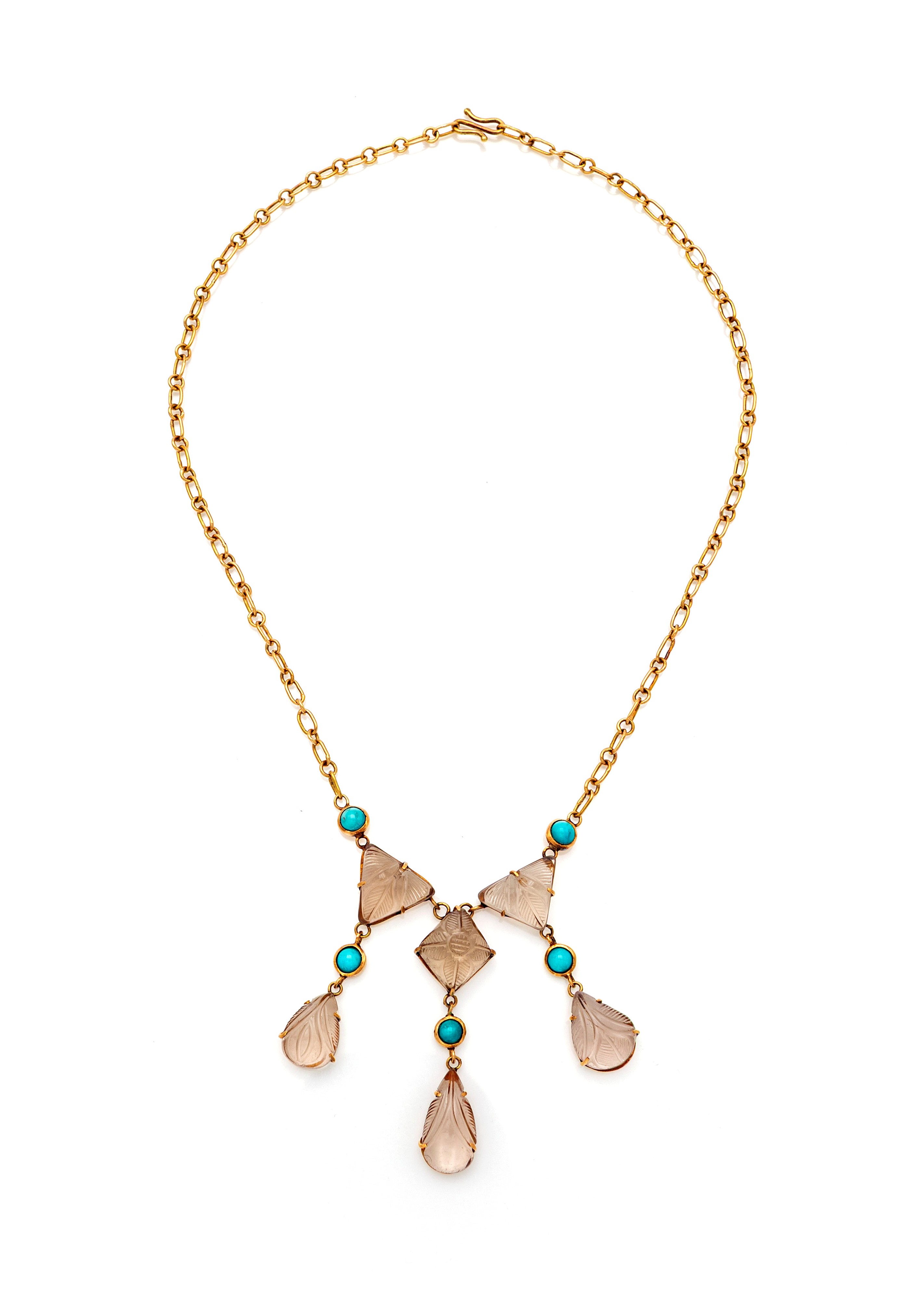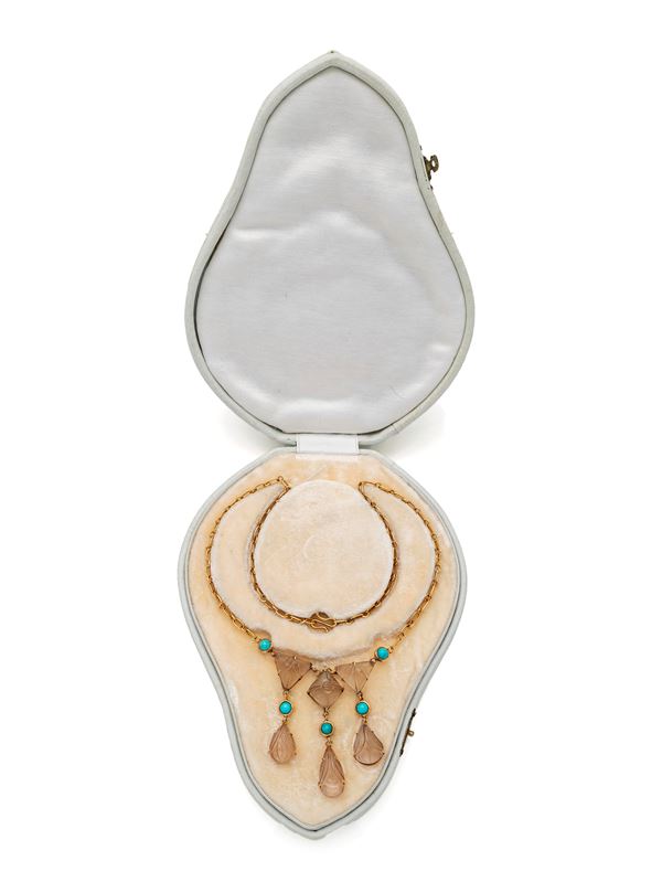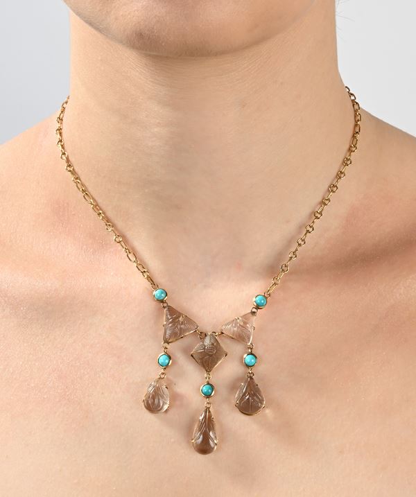 Pettorale antico in oro, quarzi incisi e turchesi, Primi '900