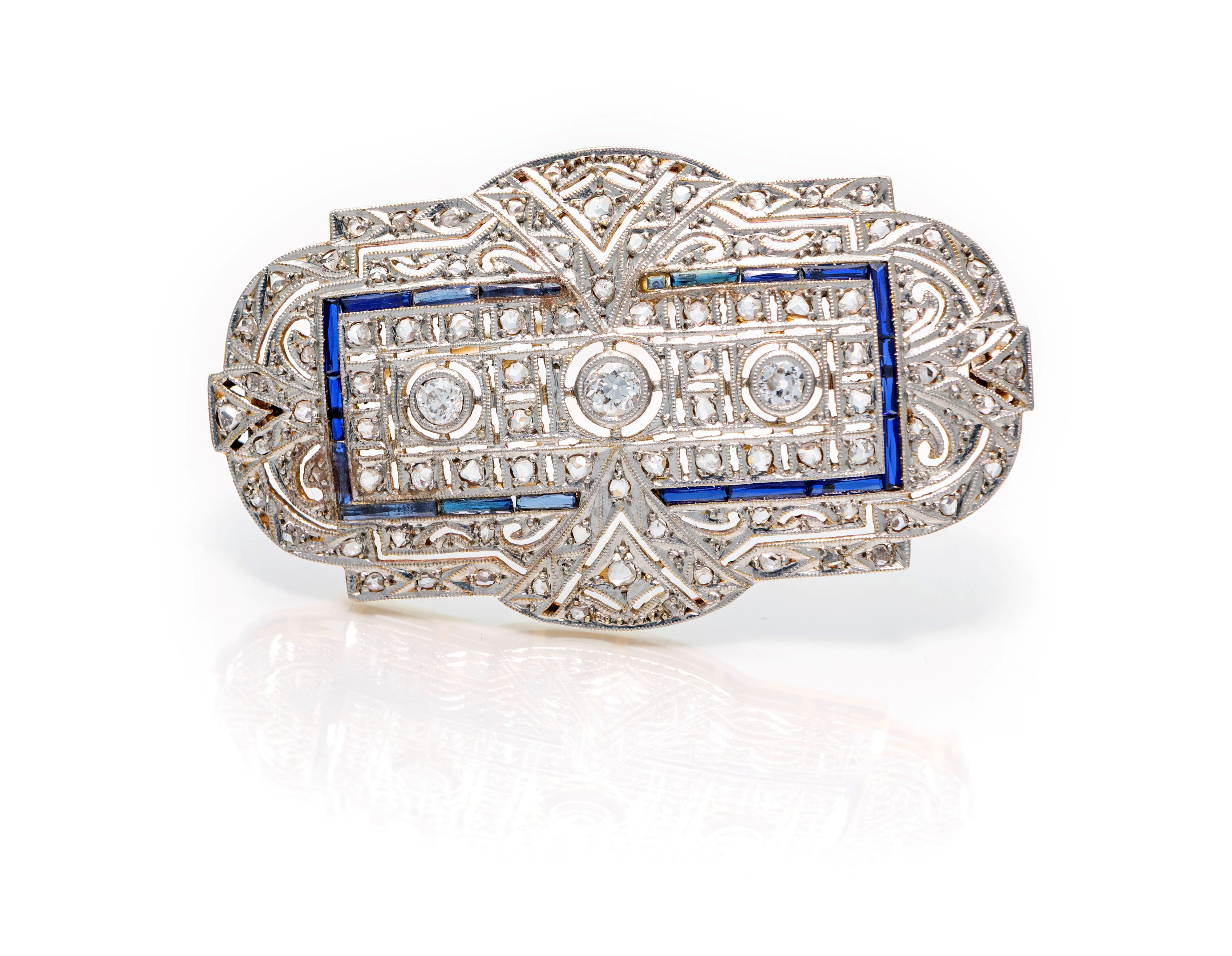 Oro giallo 750/000, platino. Diamanti in taglio rotondo. Peso complessivo gr. 10,70