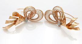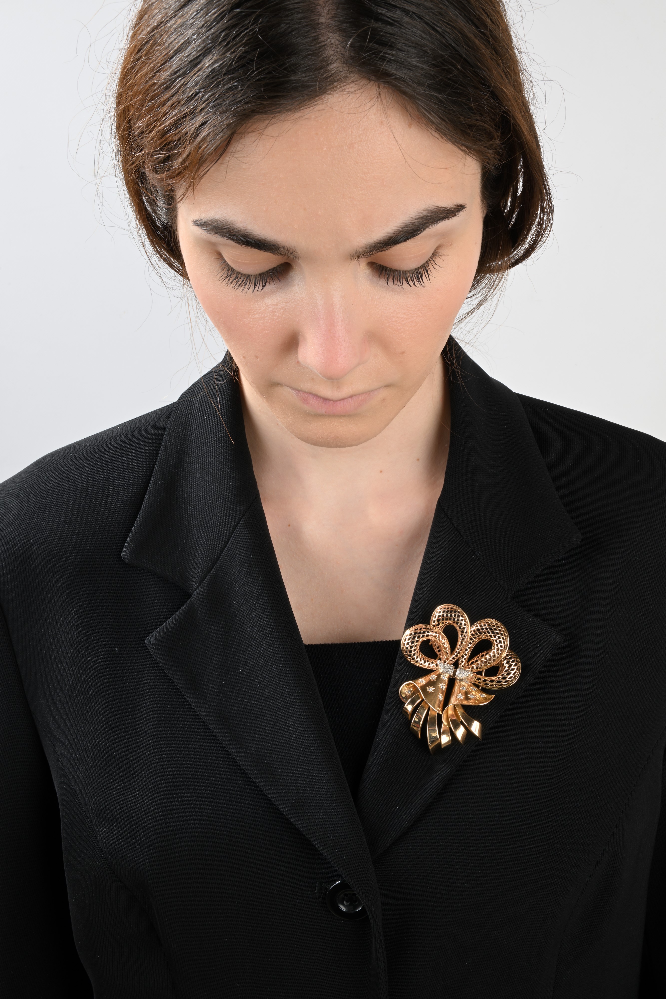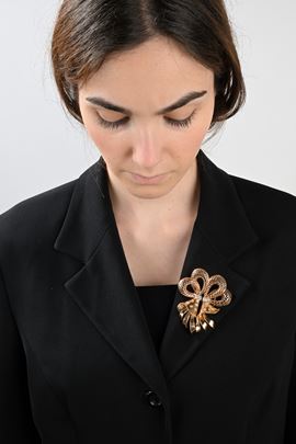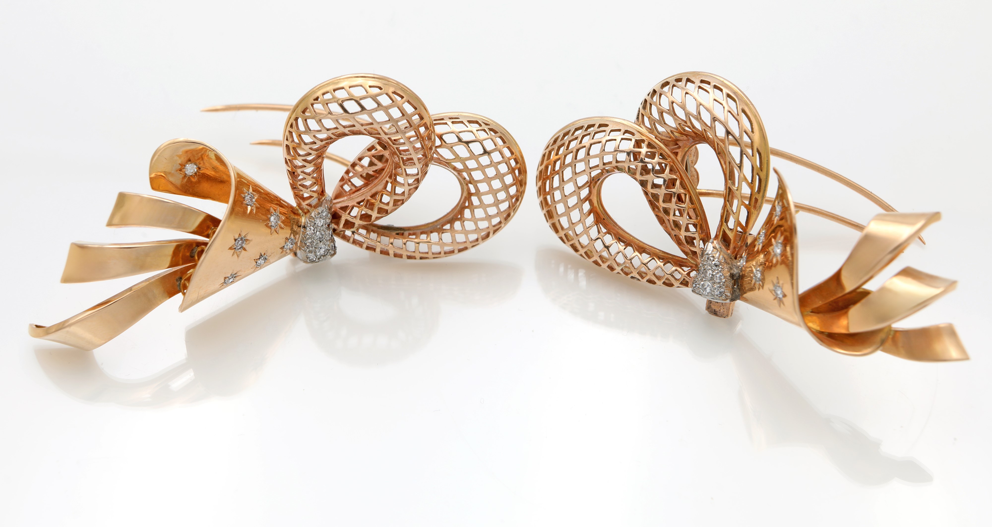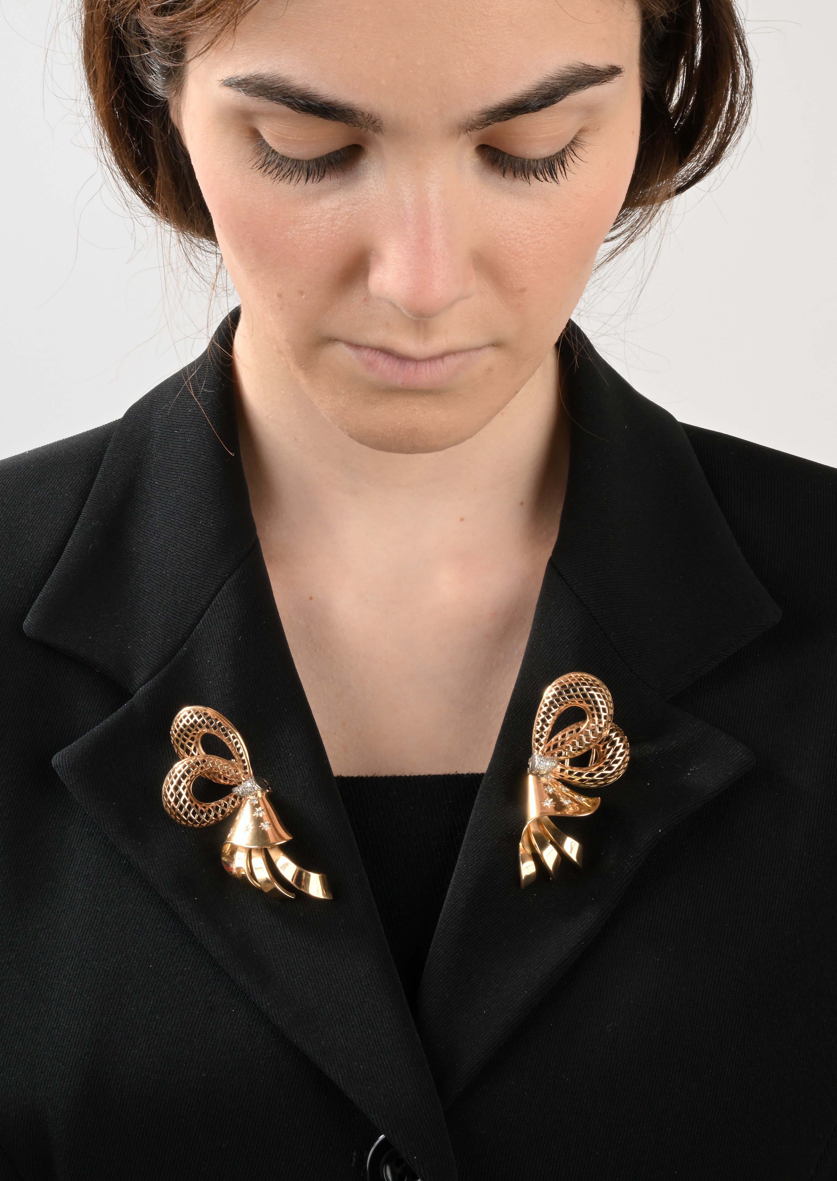 Spilla doppia clip in oro e brillanti, Art Retrò
