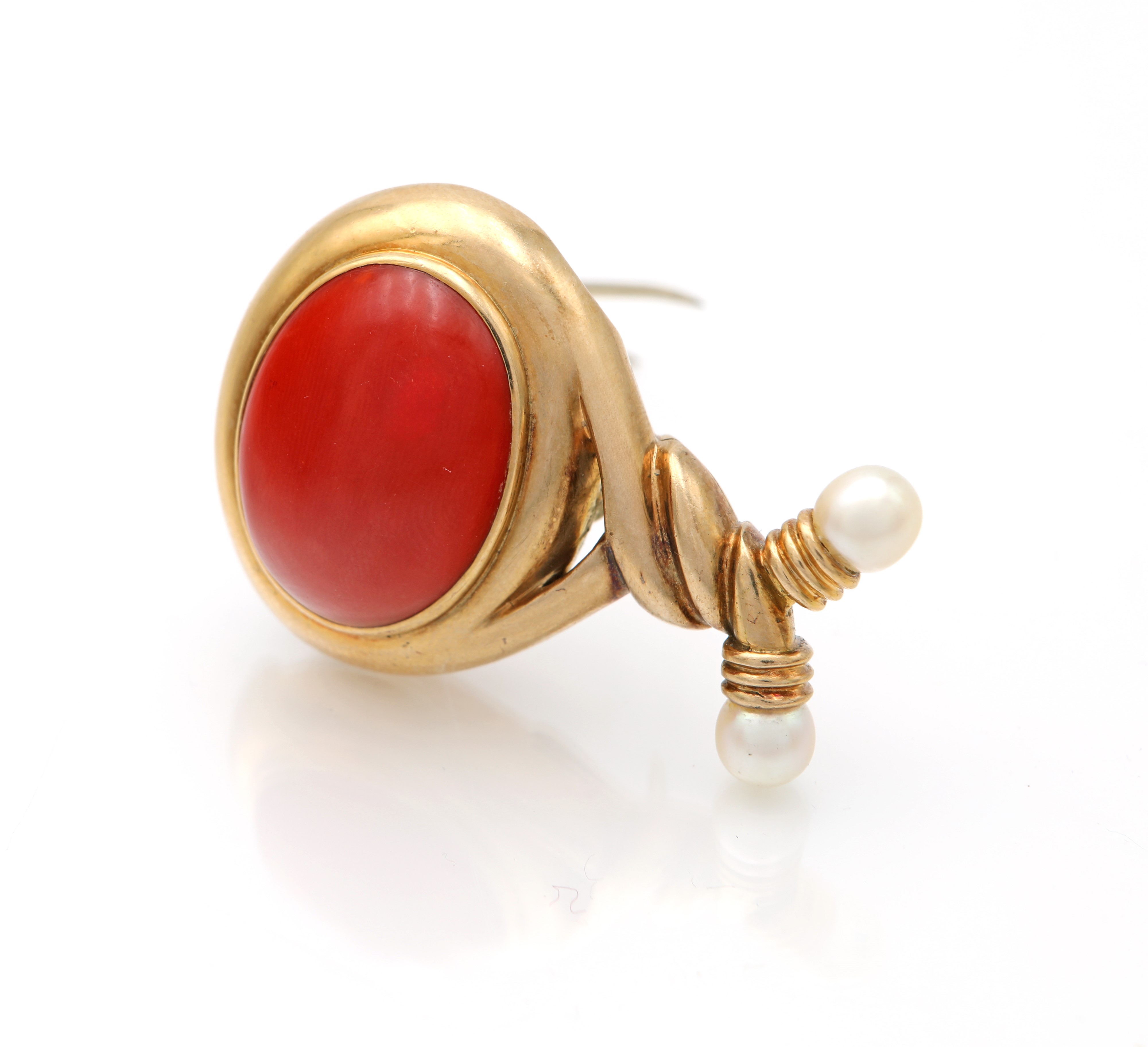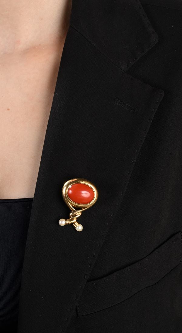 Spilla in oro, corallo e perle