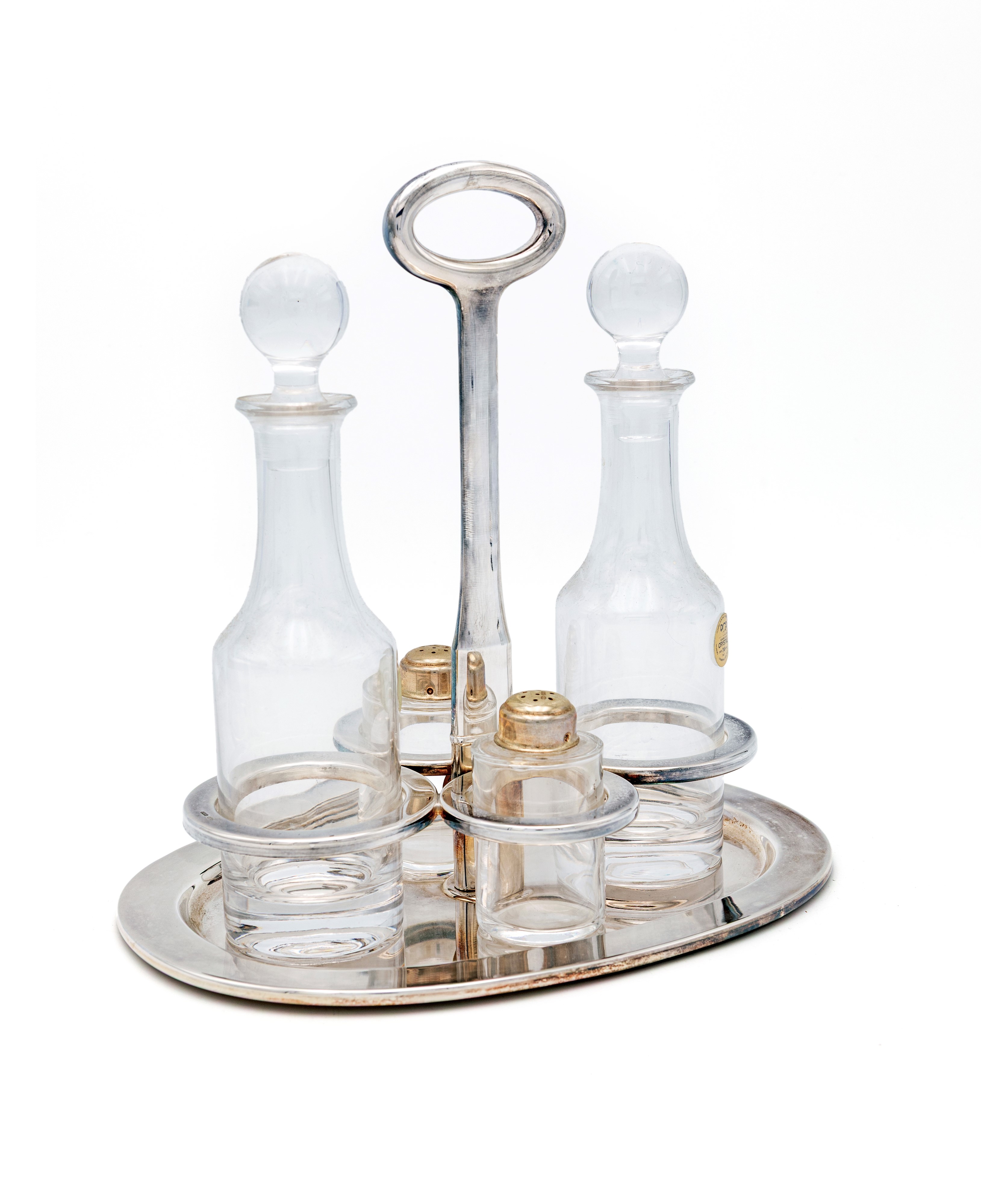 Acetoliera in argento con flaconi in cristallo
