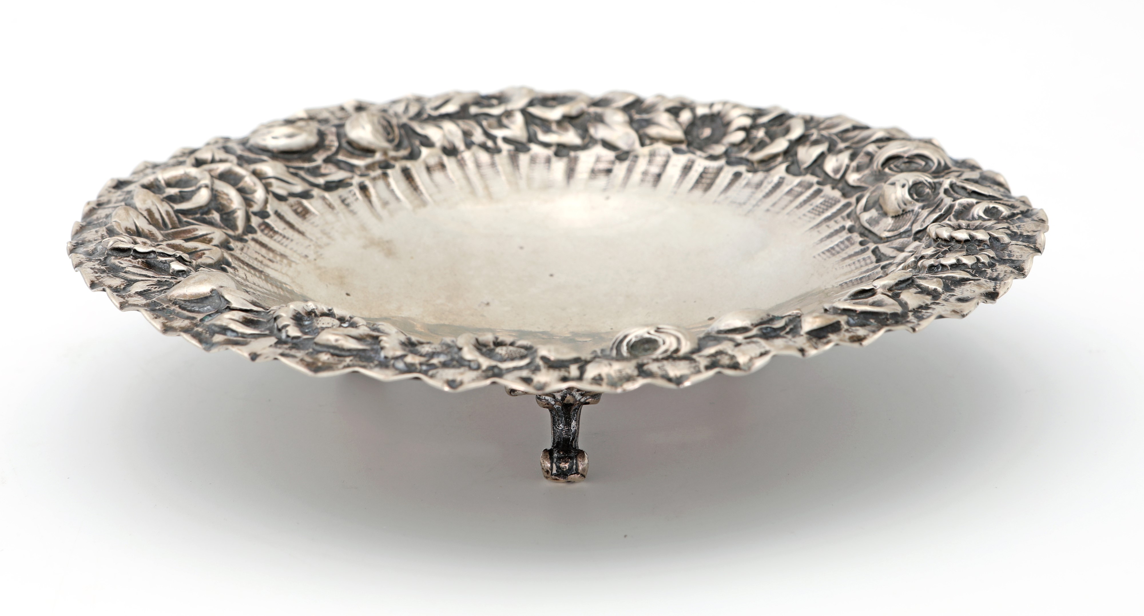 Alzatina in argento 800/000 con orlo percorso da fiori baccellati