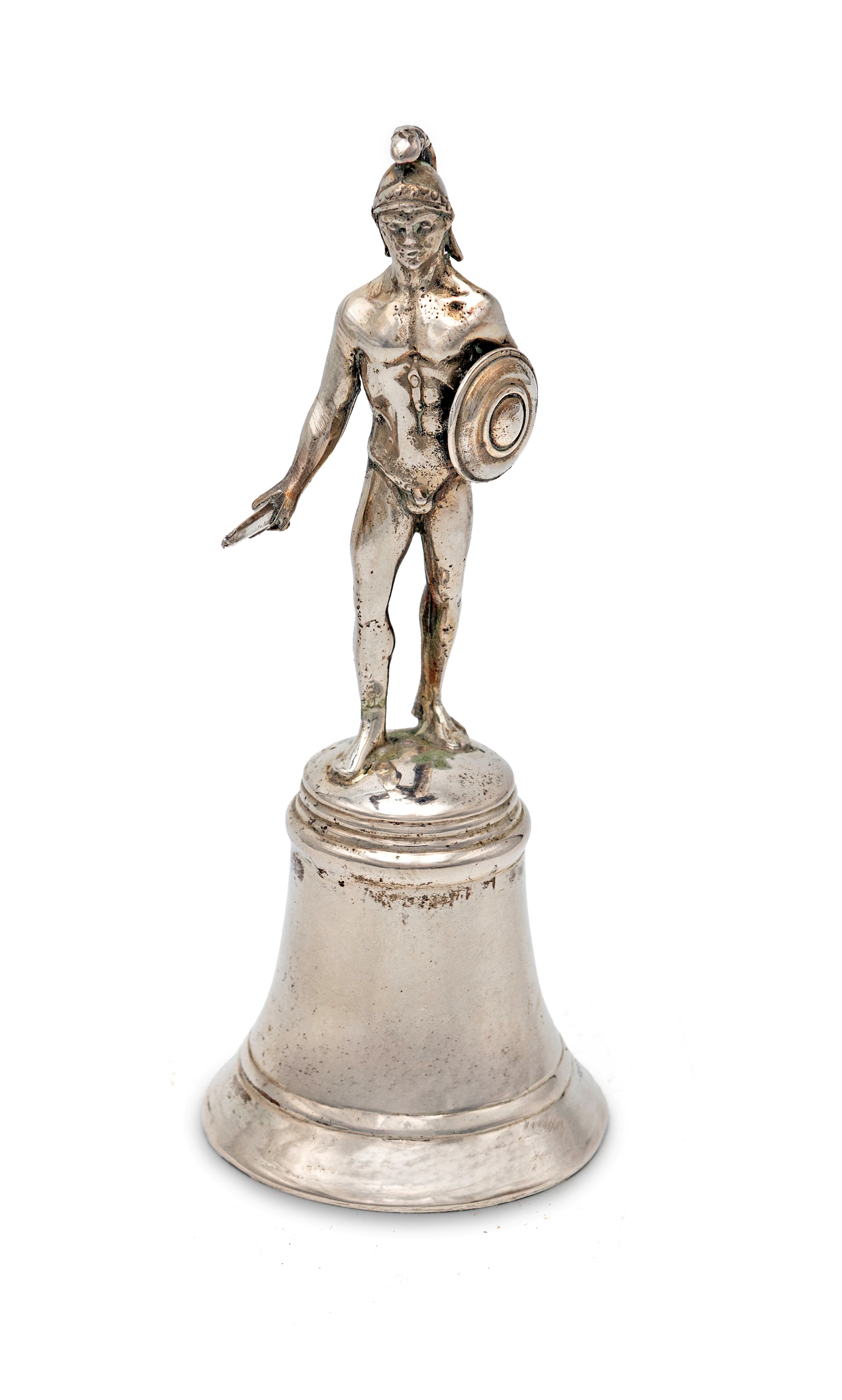 impugnatura scultorea a forma di guerriero con scudo e spada
