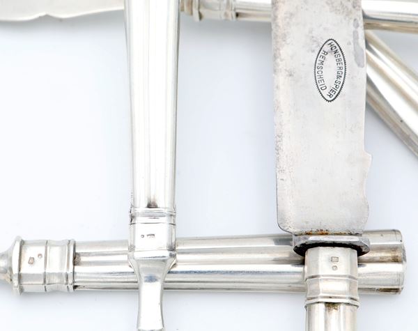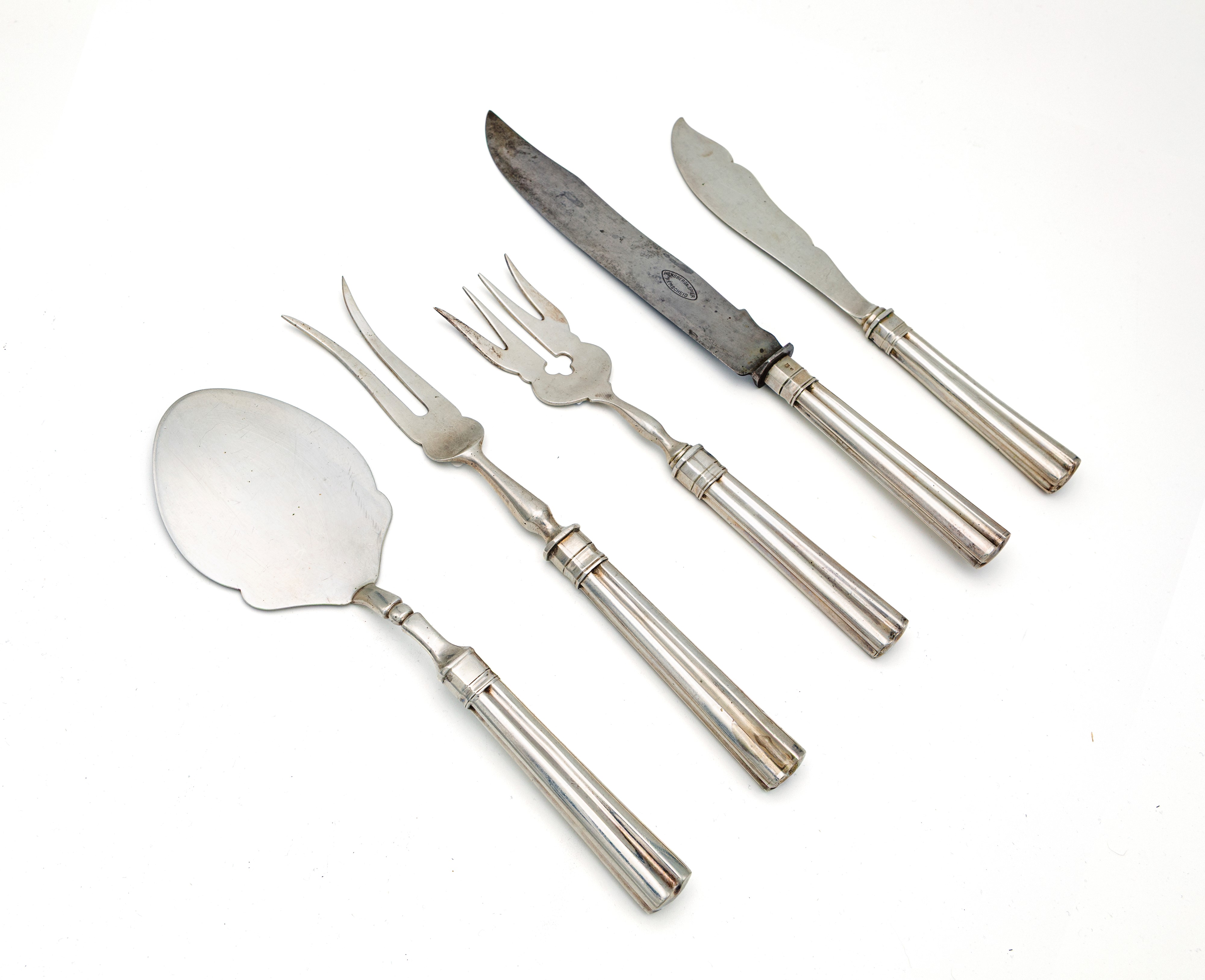 Cinque posate da portata con prese scanalate, Austroungarico, XIX secolo