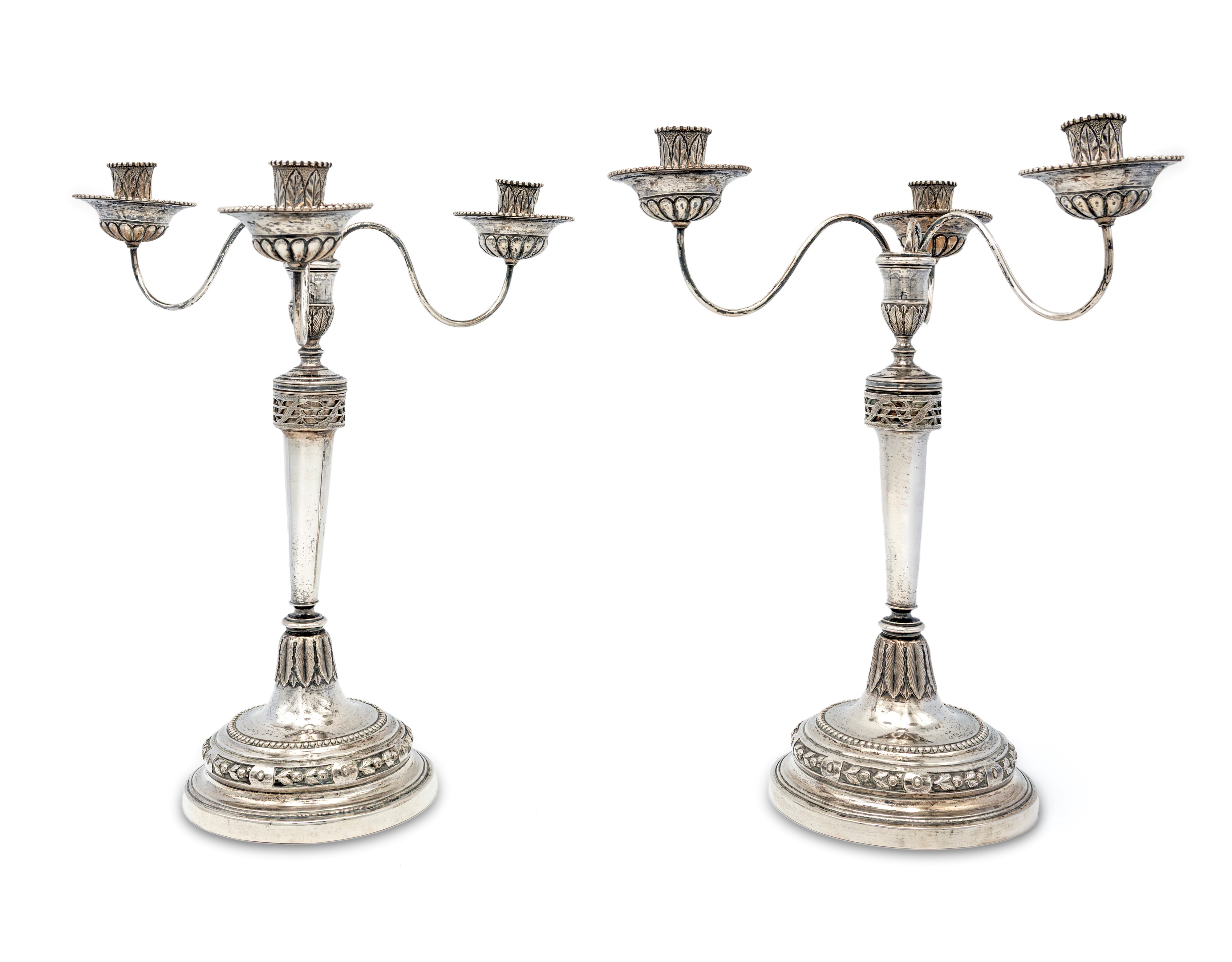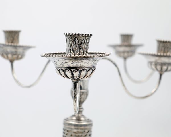 portacandela in forma di vaso in cui si impernia un palco a tre bracci sagomati