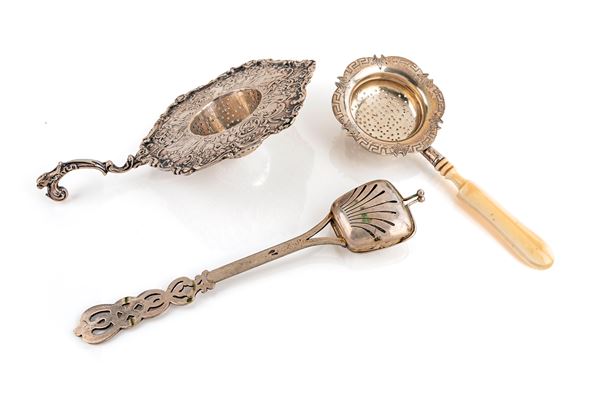 Due colini ed un filtro da tè in argento, XIX/XX secolo