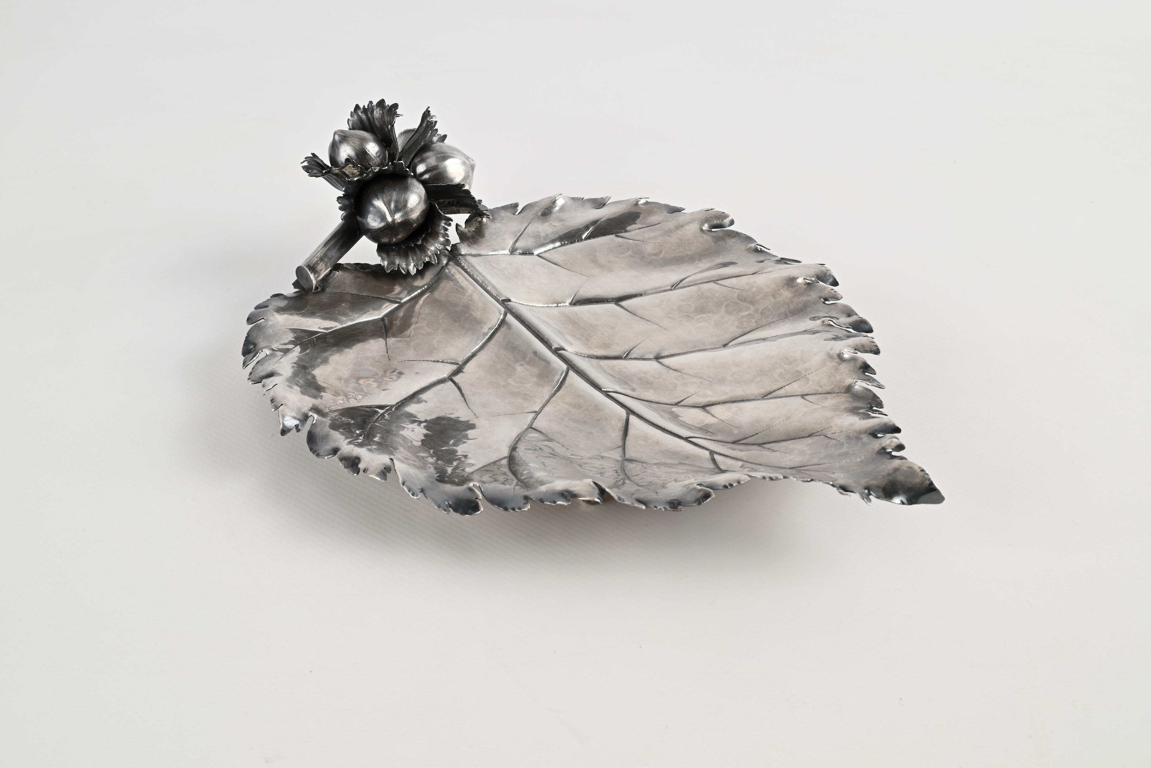 alzatina modellata come una foglia il cui picciolo è caratterizzato da tre nocciole