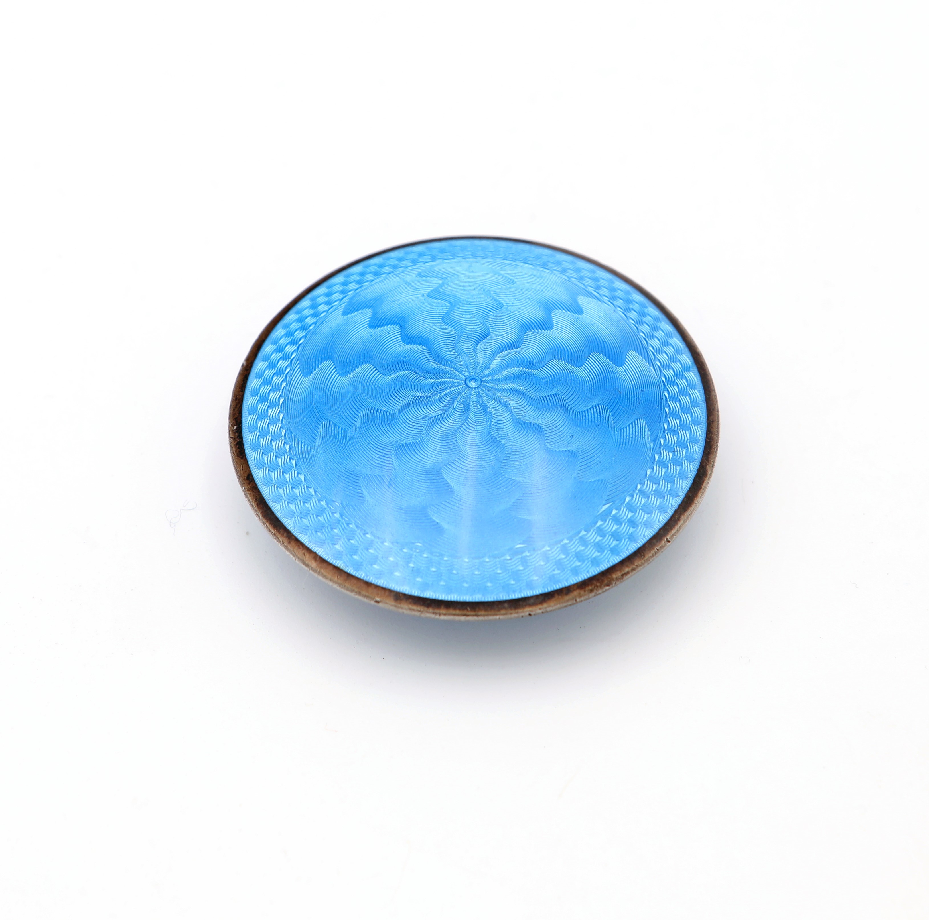 Piccolo portapillole in argento e smalto azzurro guillochée, Svizzera, primi Novecento