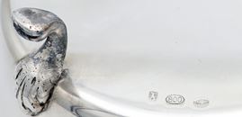orlo superiore con profilo a palmette, manici sagomati, piedi ferini