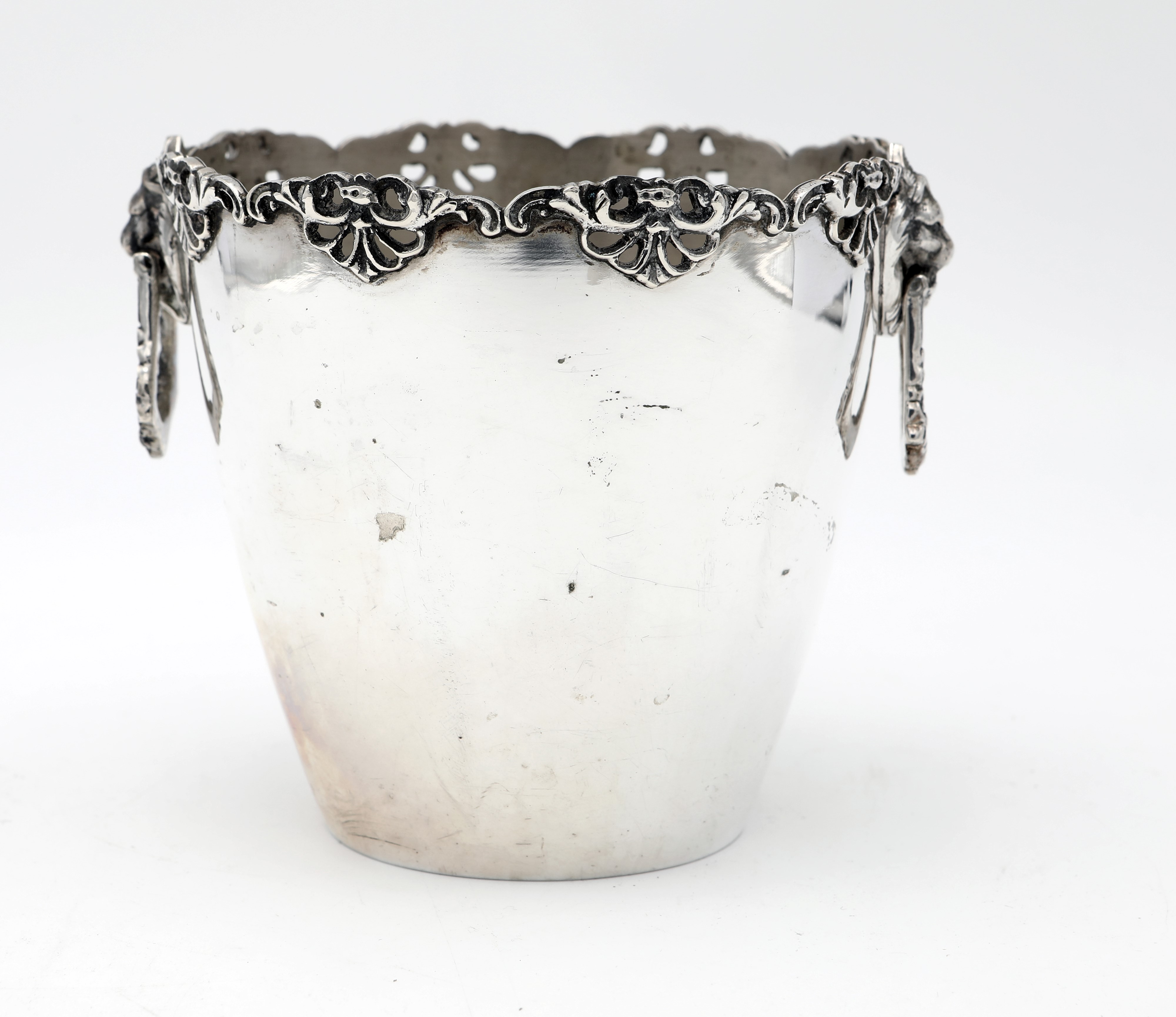 caratterizzato da profilo traforato e da anse in forma di mascherone leonino
