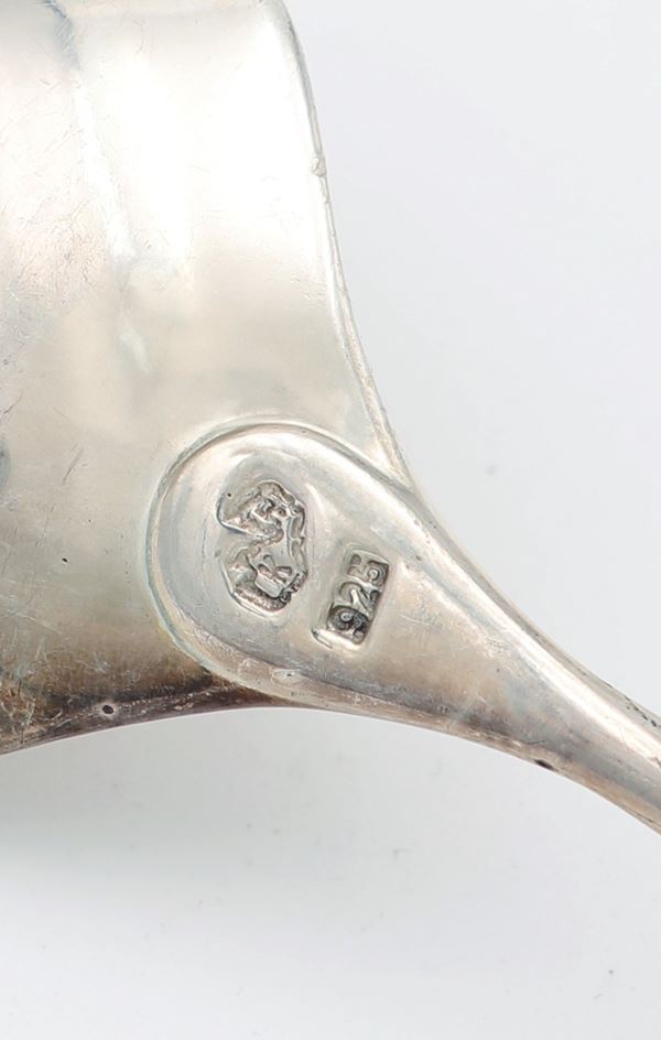Sei cucchiai per usi diversi in argento con sfera in malachite