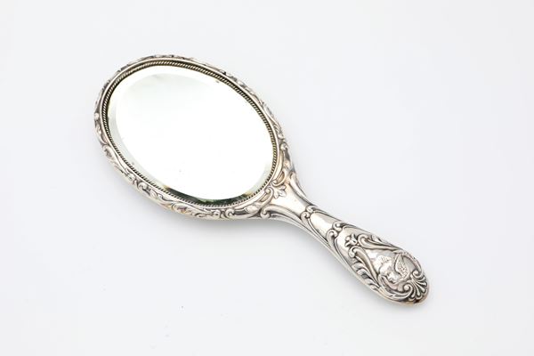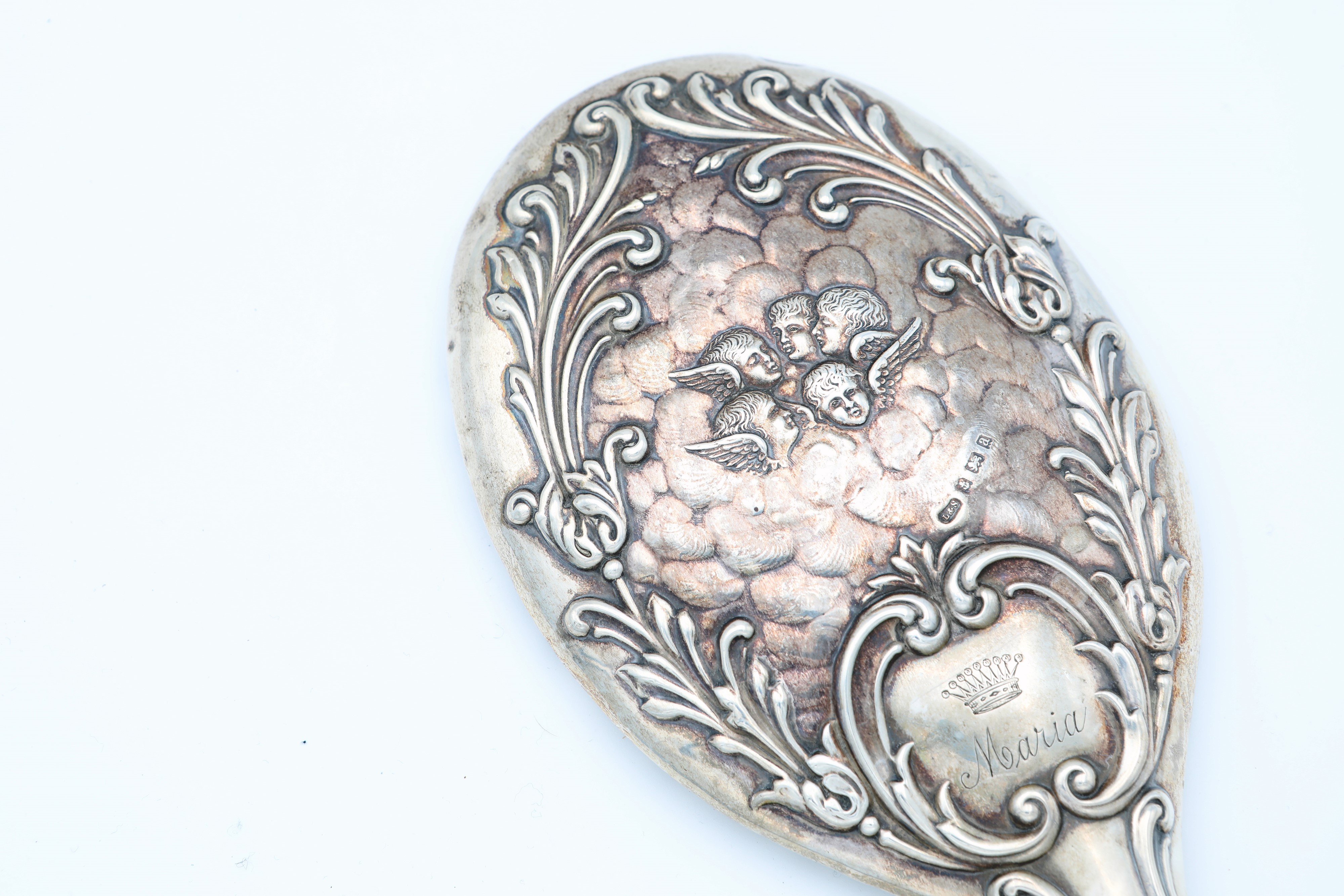 Specchio da toletta in lamina d'argento sbalzato, Birmingham, 1900ata,