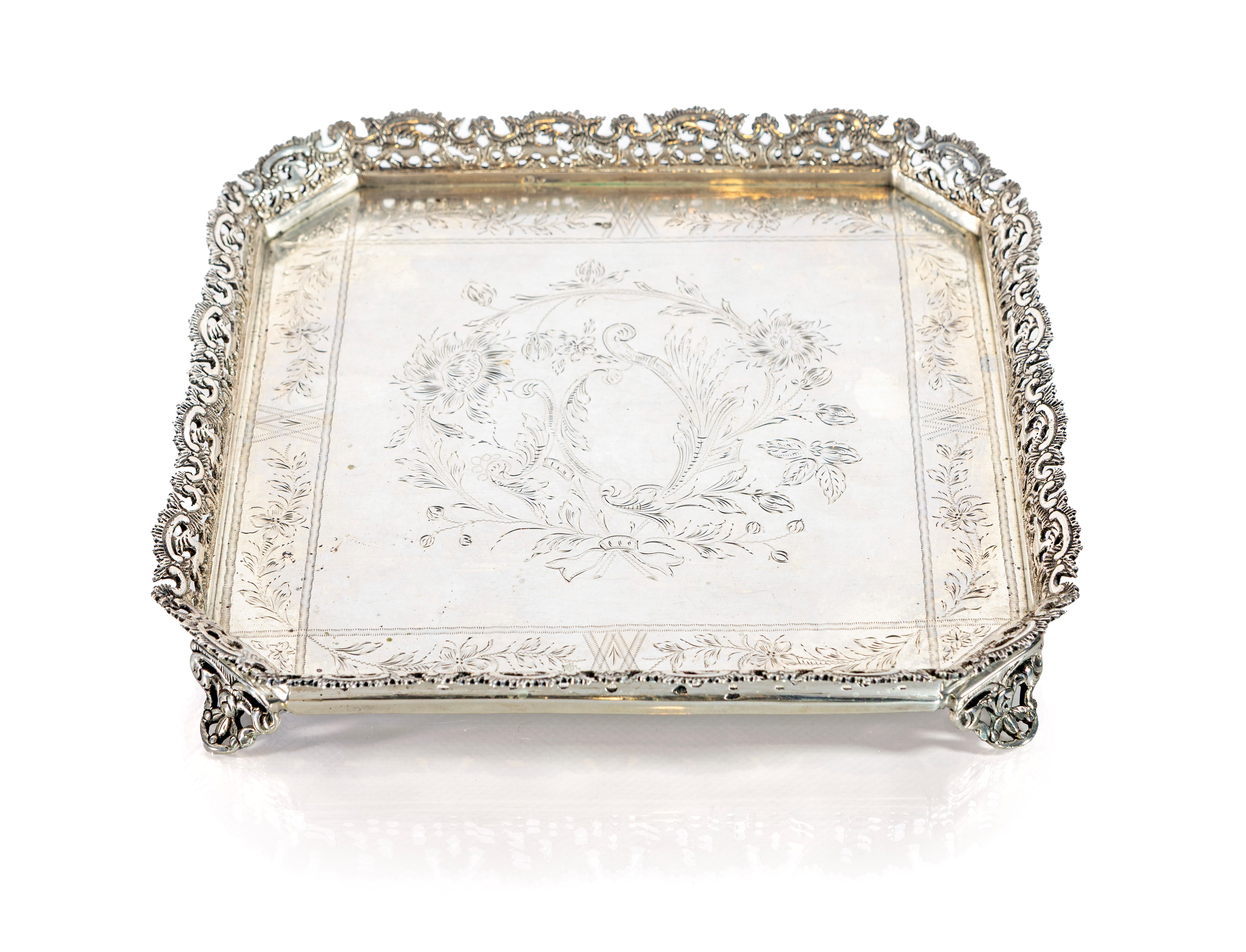 Vassoietto quadrangolare in argento, medio oriente, XIX secolo