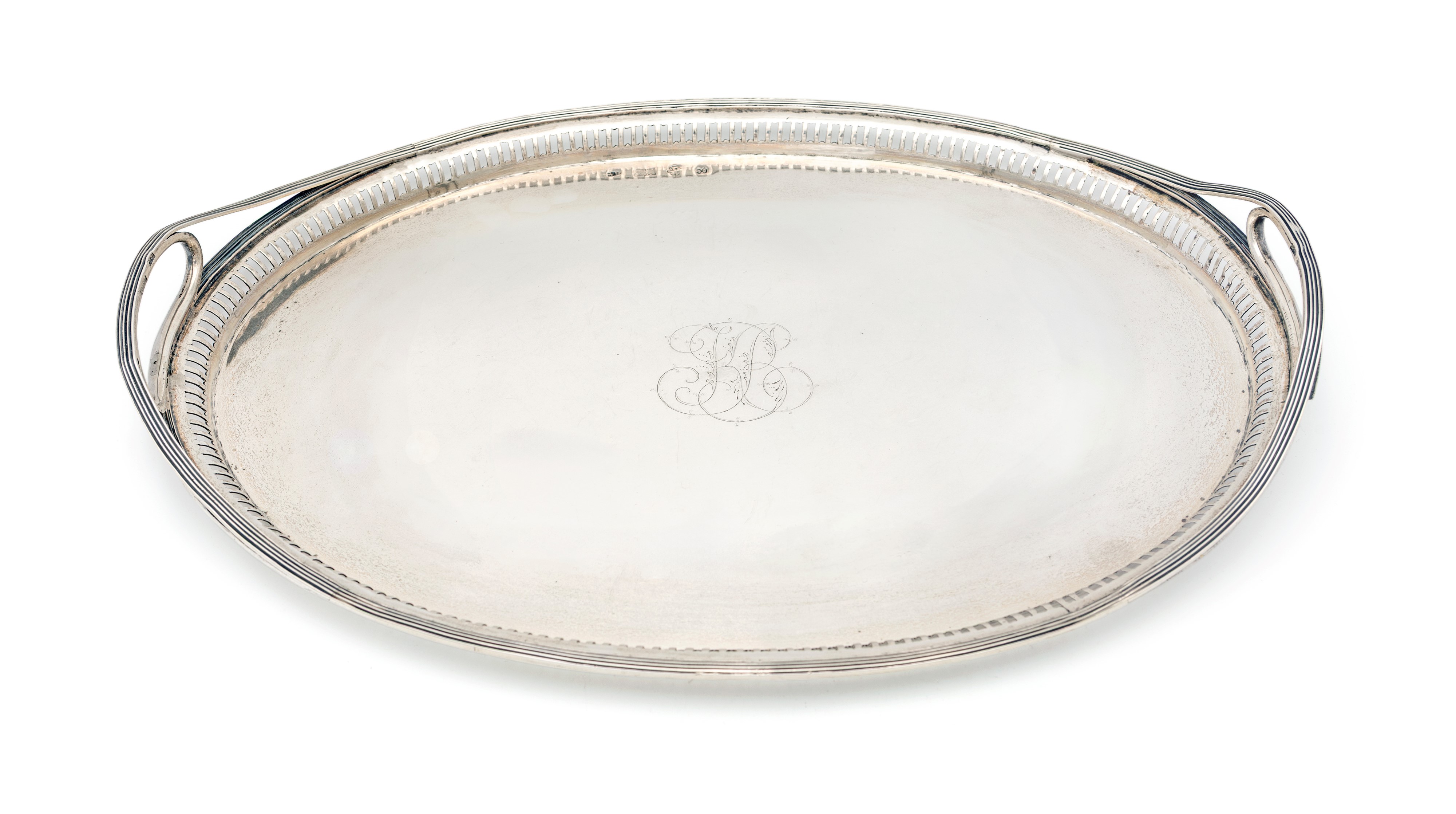 Vassoio ovale biansato con bordo a ringhiera traforata, Russia, 1806