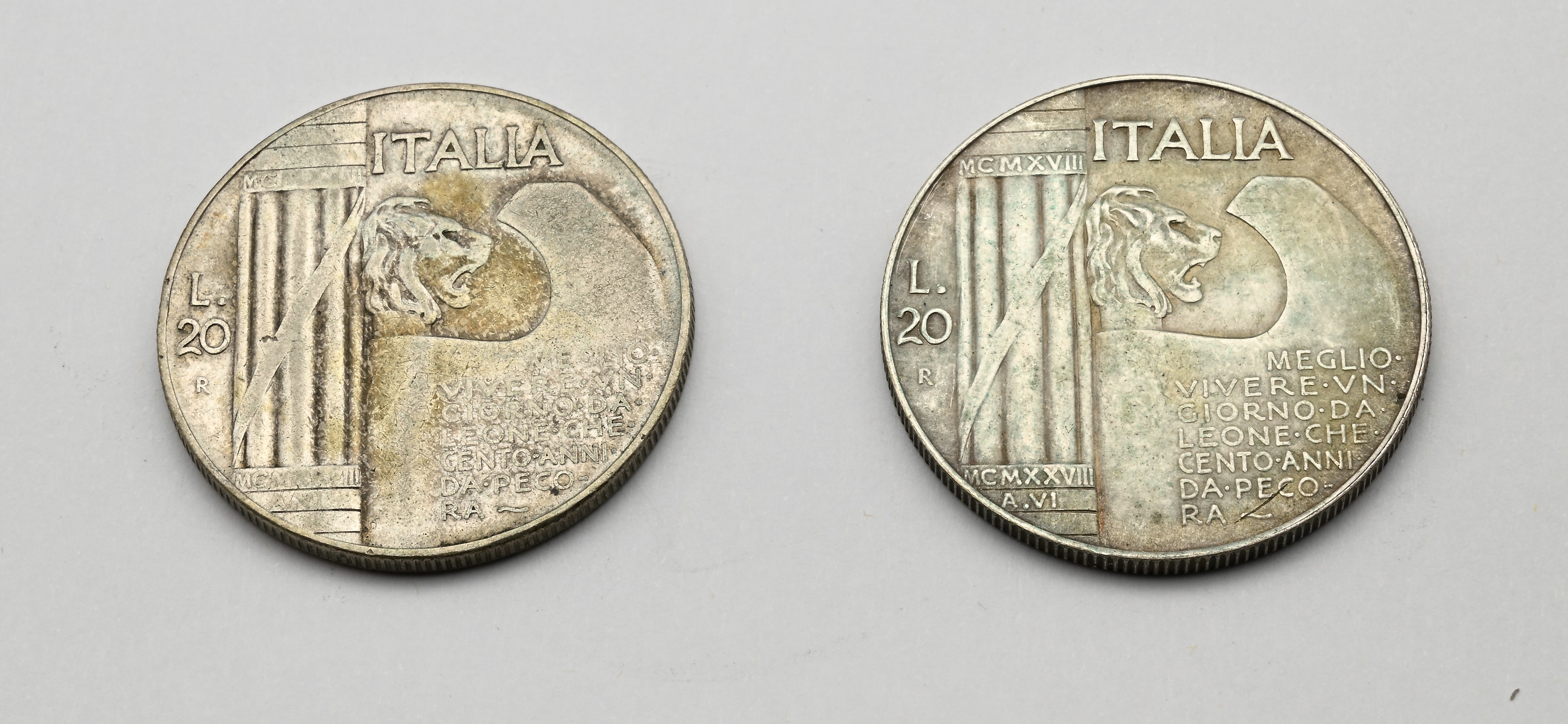 2 Monete da 20 Lire 1928 (Decennale della Vittoria) Vittorio Emanuele III Regno d'Italia