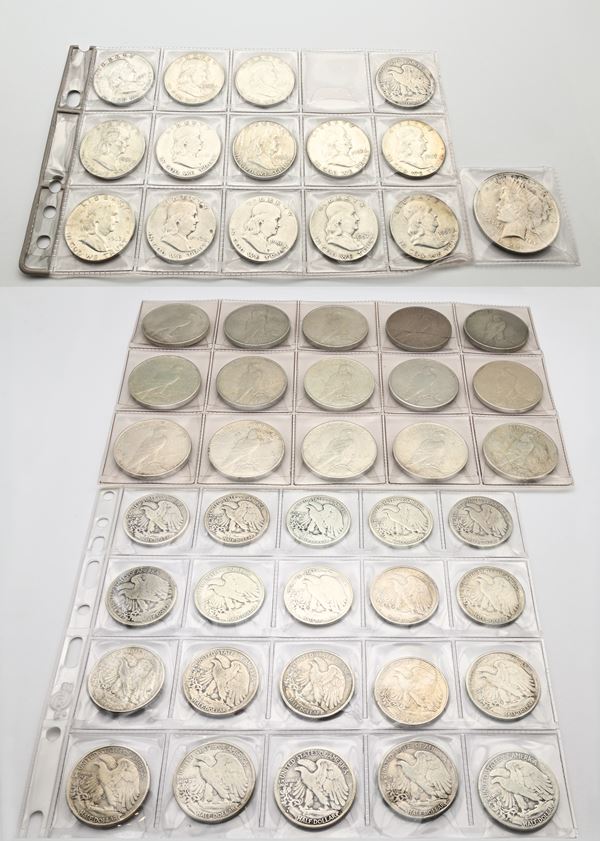 Lotto 16 Dollari Peace; 21 Mezzi dollari Liberty; 13 Mezzi Dollari Franklin USA