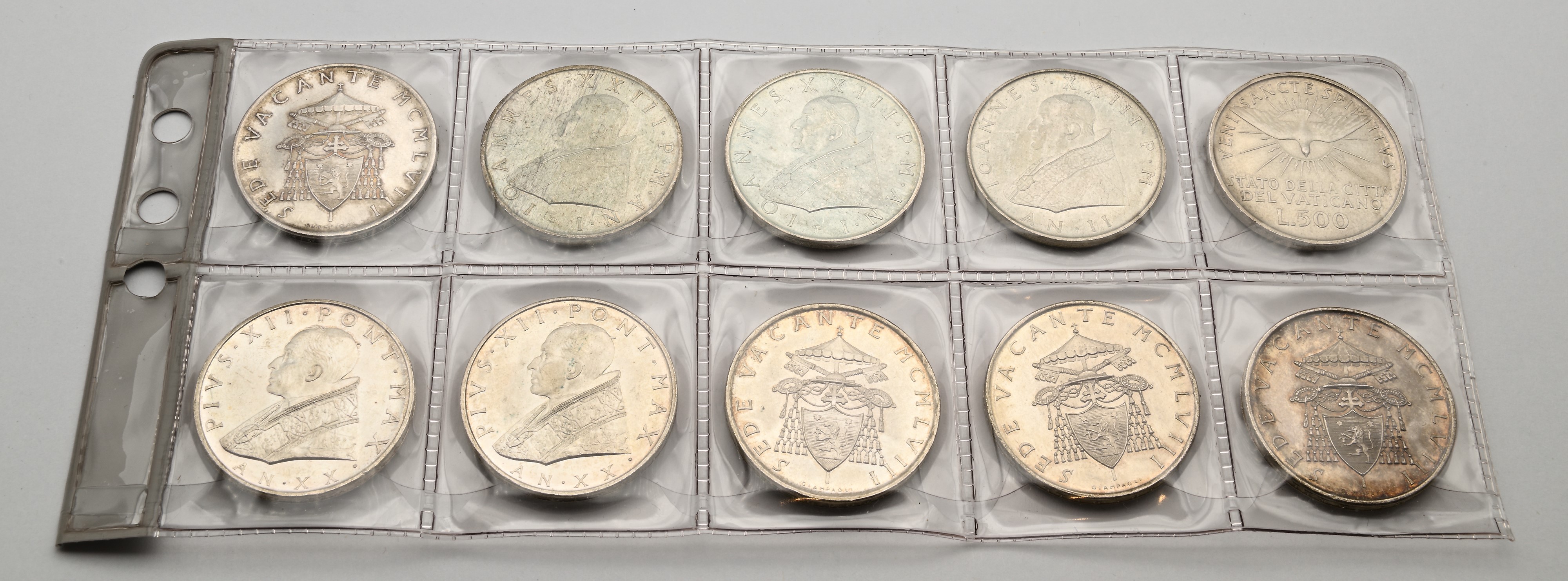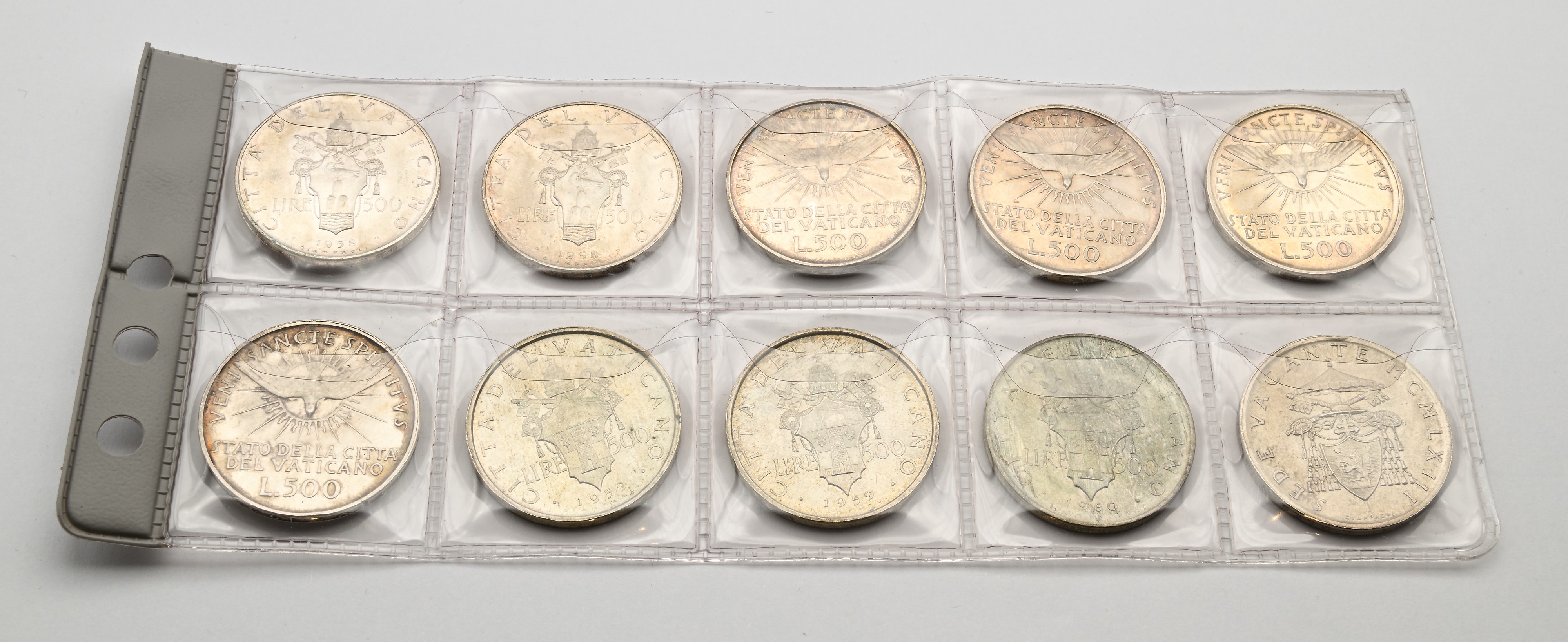 Lotto 500 Lire Città del Vaticano 1958 Pio XII (2), 1958 Sede Vacante (4), 1959 (2), 1960 Giovanni XXIII, 1963 Sede Vacante