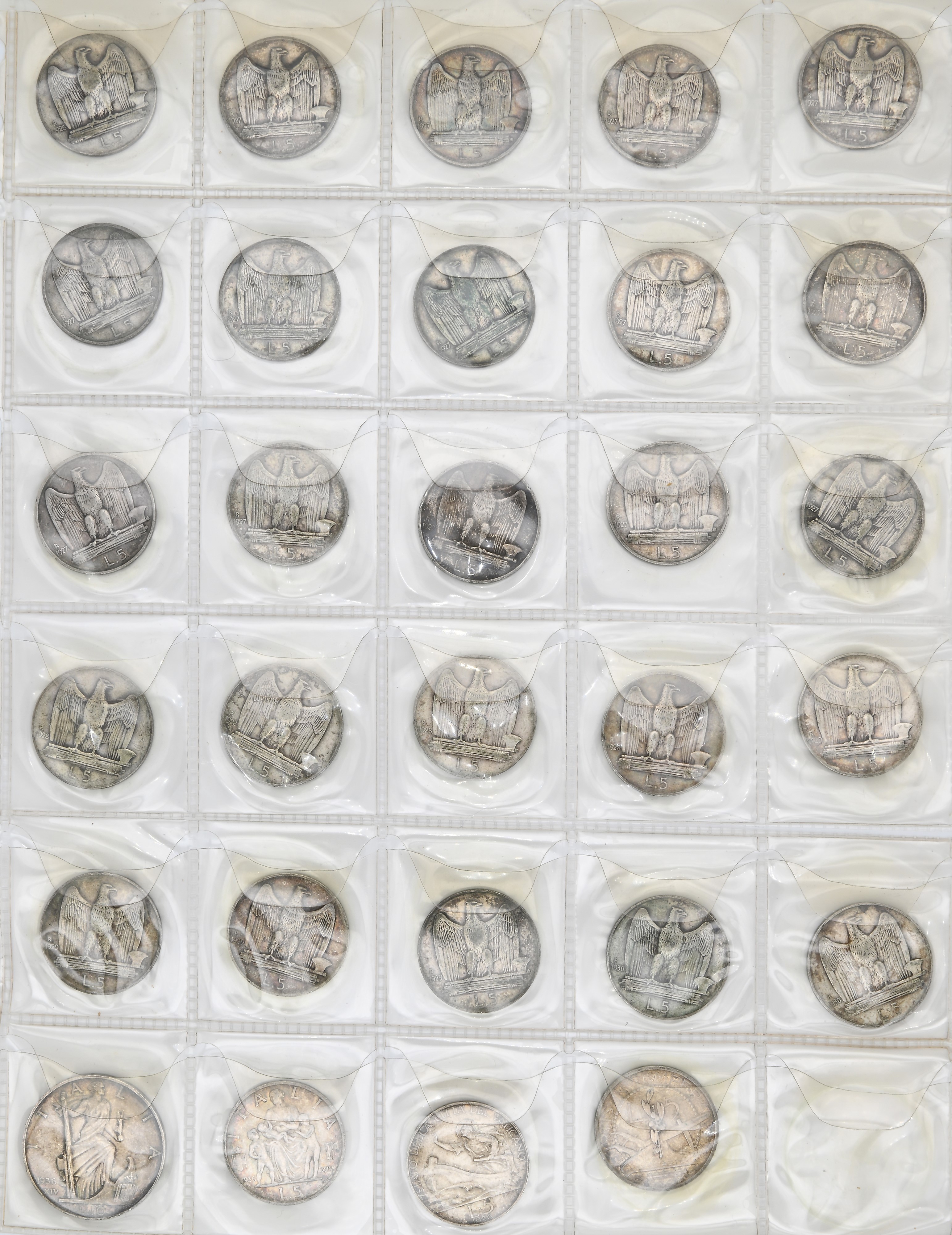 Lotto di 26 monete da 5 Lire (1926/30 e 1936), 1 da 10 Lire 1936 del Regno d'Italia, 5 Lire di San Marino 1935 e della Città del Vaticano 1936