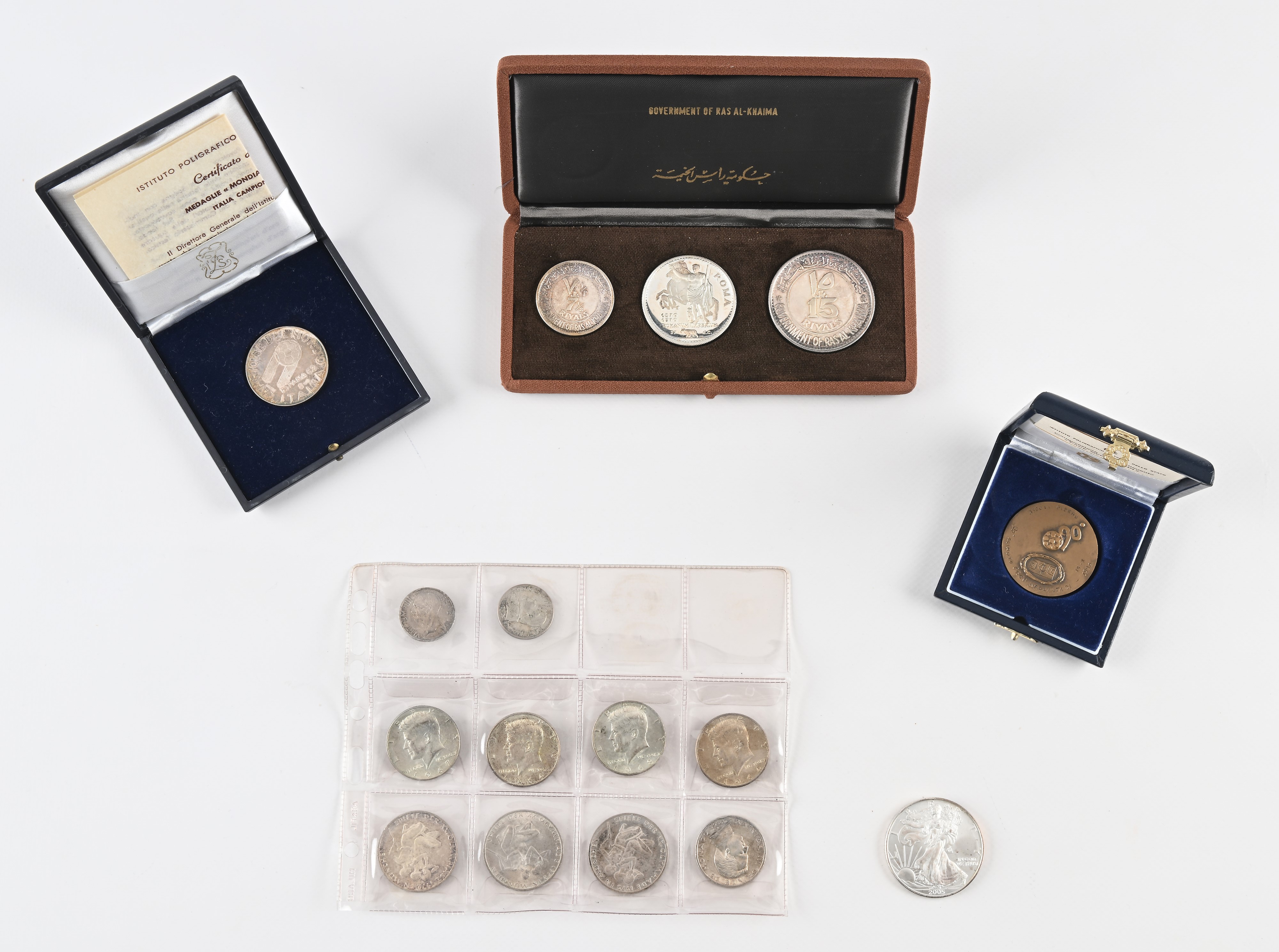 Lotto di monete e medaglie in argento e metallo vile italiane ed estere