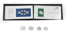Lotto di monete Proof e cartamoneta First Issue 1977 Salomon Islands; 2 pezzi da 10 Dollari e 2 pezzi da 5 Dollari 1976 Elisabetta II Canada