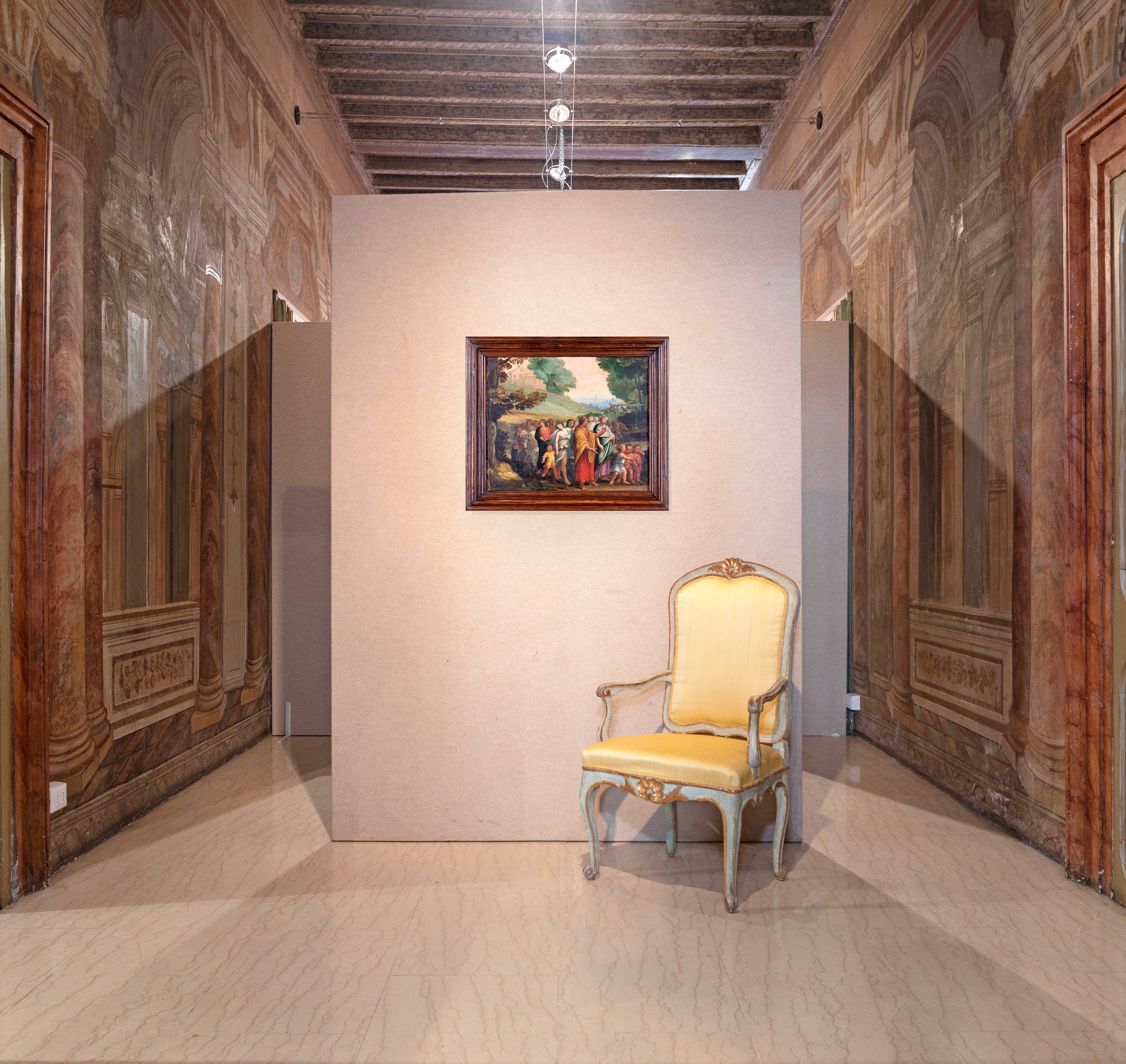 La pennellata fluente, le caratterizzazioni fisiche e le pose delle figure suggeriscono l'intervento di un pittore di area bolognese. La tela è accompagnata da una cornice in legno, coeva con l'esecuzione del dipinto.
