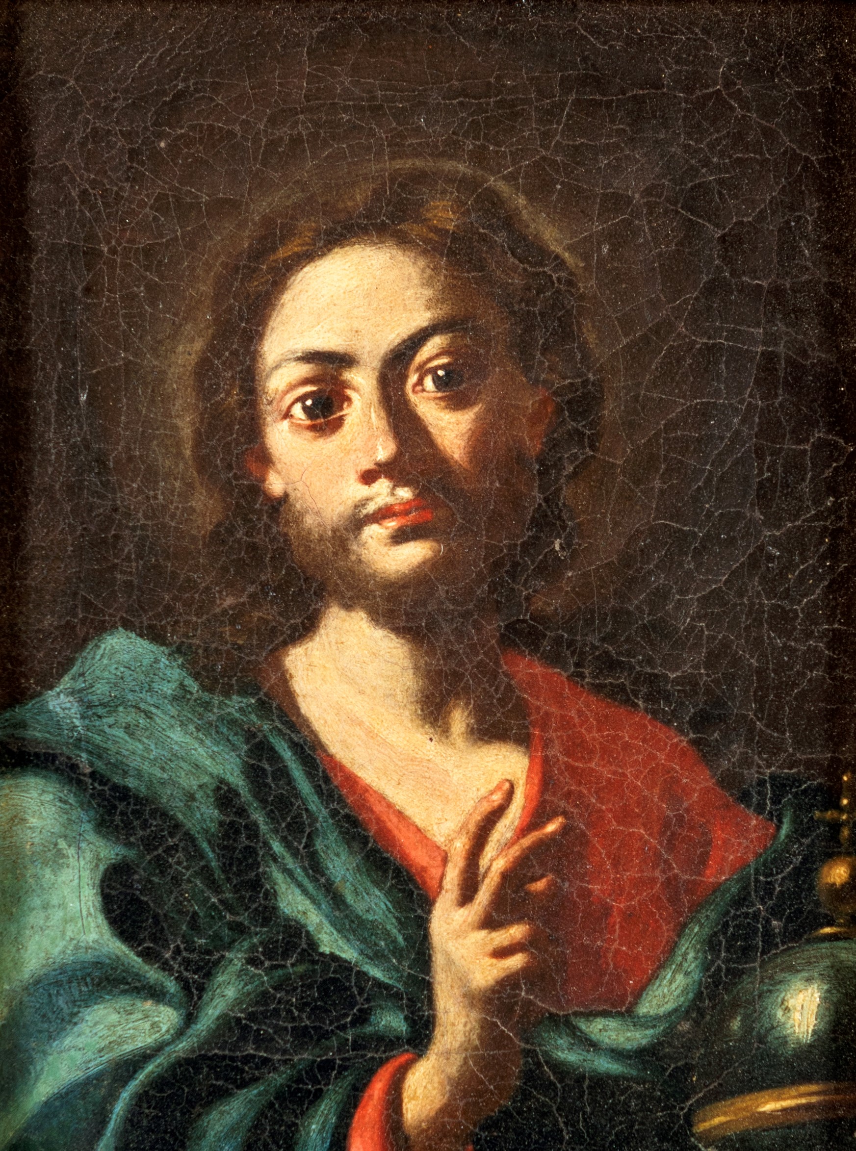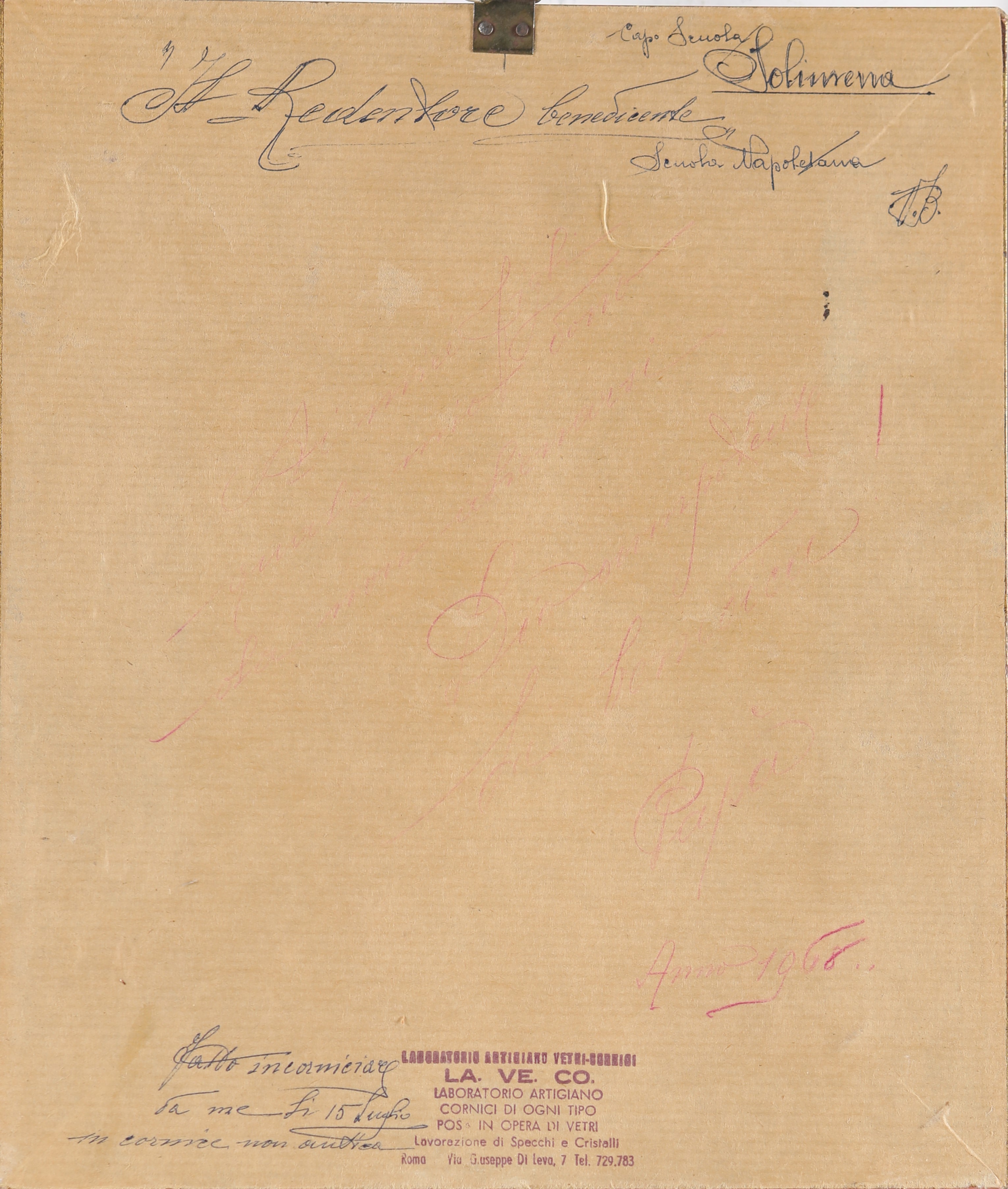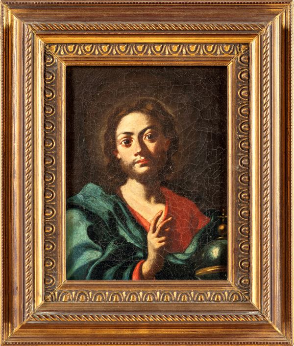 L'opera raffigura il Cristo benedicente a mezzo busto, con il gesto della mano destra che allude al mistero della Trinità divina. La tunica e il manto che il Redentore indossa sono di colore rosso e azzurro. L'iconografia dell'opera richiama l'immagine tradizionale bizantina del 'Cristo Pantocrator'.